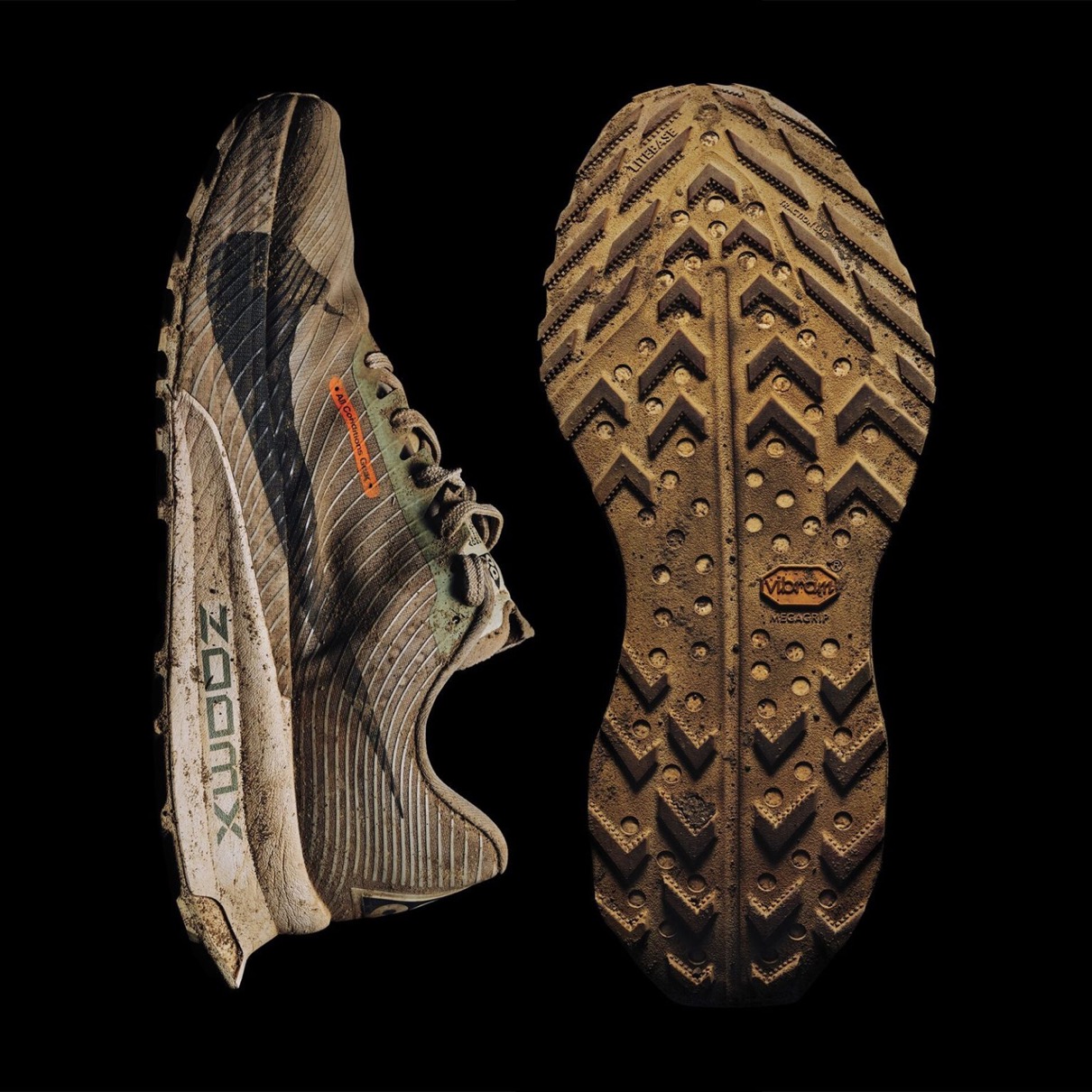 ACG ウルトラフライは、ナイキのレーシング技術とACGのトレイル専門知識を融合させたモデル。ZoomXミッドソールとカーボンファイバー製FlyPlateが軽量な推進力と精密なハンドリングを実現し、Vibram Litebaseアウトソールがテクニカルな地形での俊敏なグリップ力を提供。これは、トレイルランナーが不整地で機敏さと自信を得られるように設計されたフォーミュラ。アッパーデザインは、トレイル専用のラストとメッシュ構造を採用し、通気性と排水性を向上。ACGアスリートであるウェスタンステイツエンデュランスランのチャンピオン、ケイレブ・オルソンがハイリスクなレースでプロトタイプをテストするなど、長距離での快適性をアップデート。