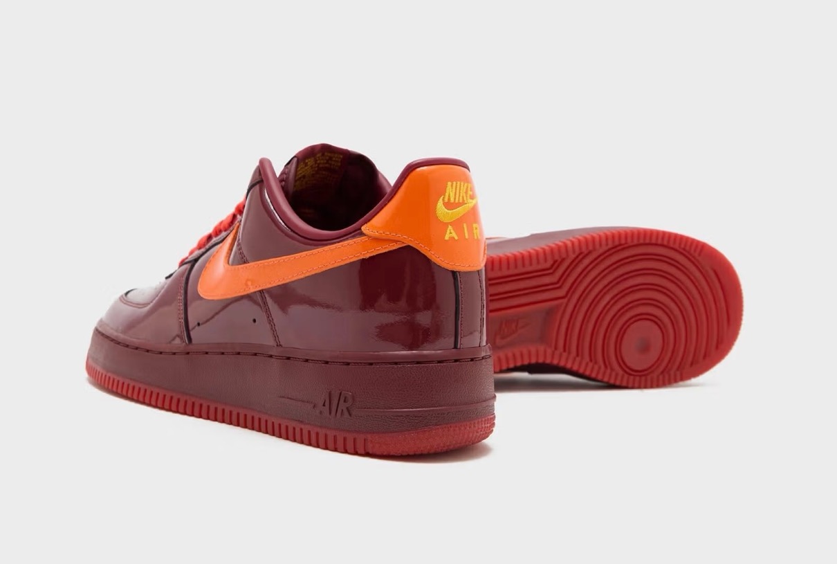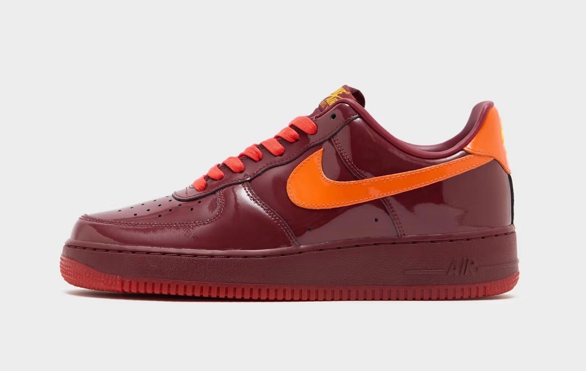アメリカ大統領専用飛行機『エアフォースワン』にちなんで命名されたナイキの人気スニーカー「Air Force 1(エアフォース1)」は、「ナイキ エア」を搭載した世界初のバスケットボールシューズとして1982年にハイカットが初登場。シューズデザイナー Bruce Kilgore(ブルース・キルゴア)が手がけたそのアイコニックなシルエットは様々な人々に愛され続けてきた。今作ではローカットモデルのアッパーを艶感のあるパテントレザーで構築。カラーはトパーズゴールド、ミスティックネイビー、ダークチームレッドを基調とした全3色が展開する。