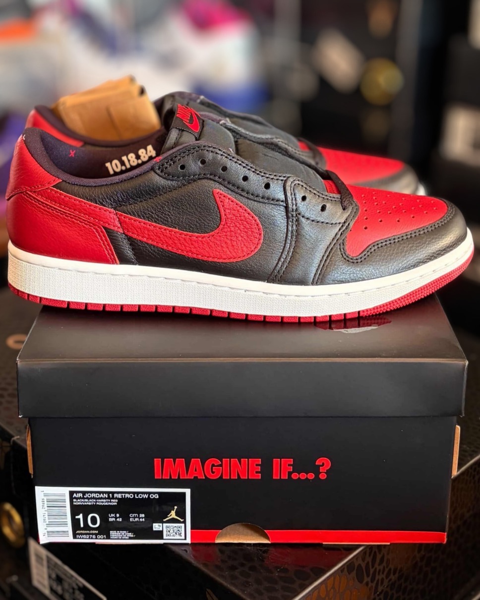 ナイキ ジョーダンブランド “Bred”(ブレッド)カラーと“×”印が特徴的な新作スニーカー AJ1(エアジョーダン1) レトロ ロー オージー “バーンド”がファミリーサイズ展開で登場。[IW6276-001]