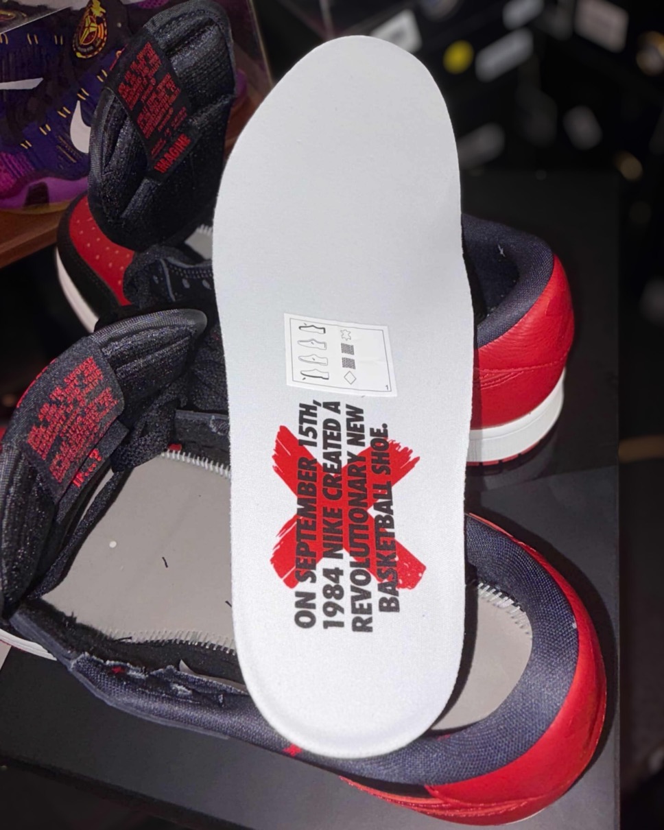 1985年に初めて発売された Michael Jordan(マイケル・ジョーダン)のシグネチャー第一弾「Air Jordan 1(エアジョーダン1)」のローカットOG仕様モデルが、アップデートされたシェイプとビッグスウッシュで復刻。アッパーにはAJ1のOGカラー「Bred(ブレッド)」のカラーブロックを纏い、シュータンラベルには『NIKE AIR』、ヒールにはウィングロゴの代わりに“Banned”を象徴する“×”印をプリント。この「×」は、2011年に登場した AJ1 High “Banned”への直接的なオマージュ。ライナーにはNBAが赤と黒のNikeバッシュ(84年の黒赤Air Shipが発端)を履くのを禁止にした1984年10月18日の日付が刻まれている。