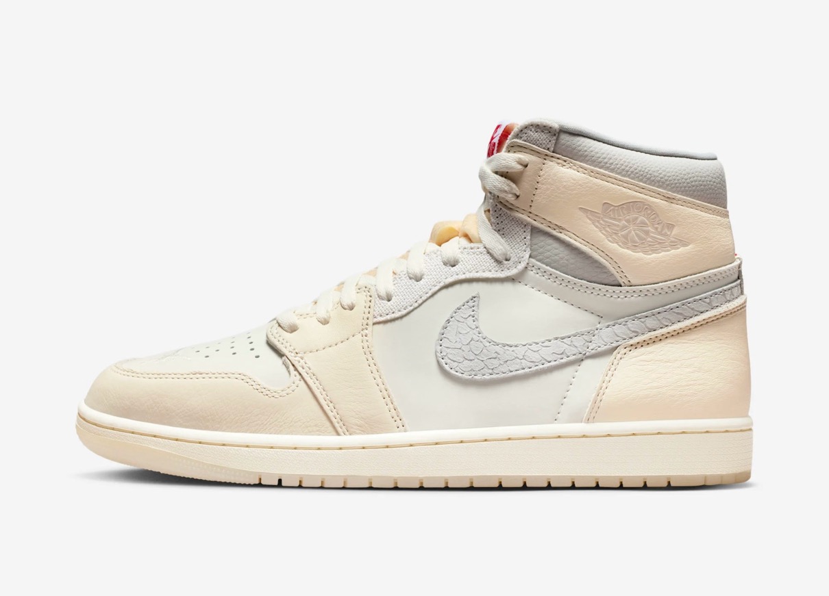 ナイキ ジョーダンブランド エレファント柄スウッシュを配した新作スニーカー AJ1(エアジョーダン1) レトロ ハイ オージー “セイル/ユニバーシティレッド”が登場。[IH4363-100]