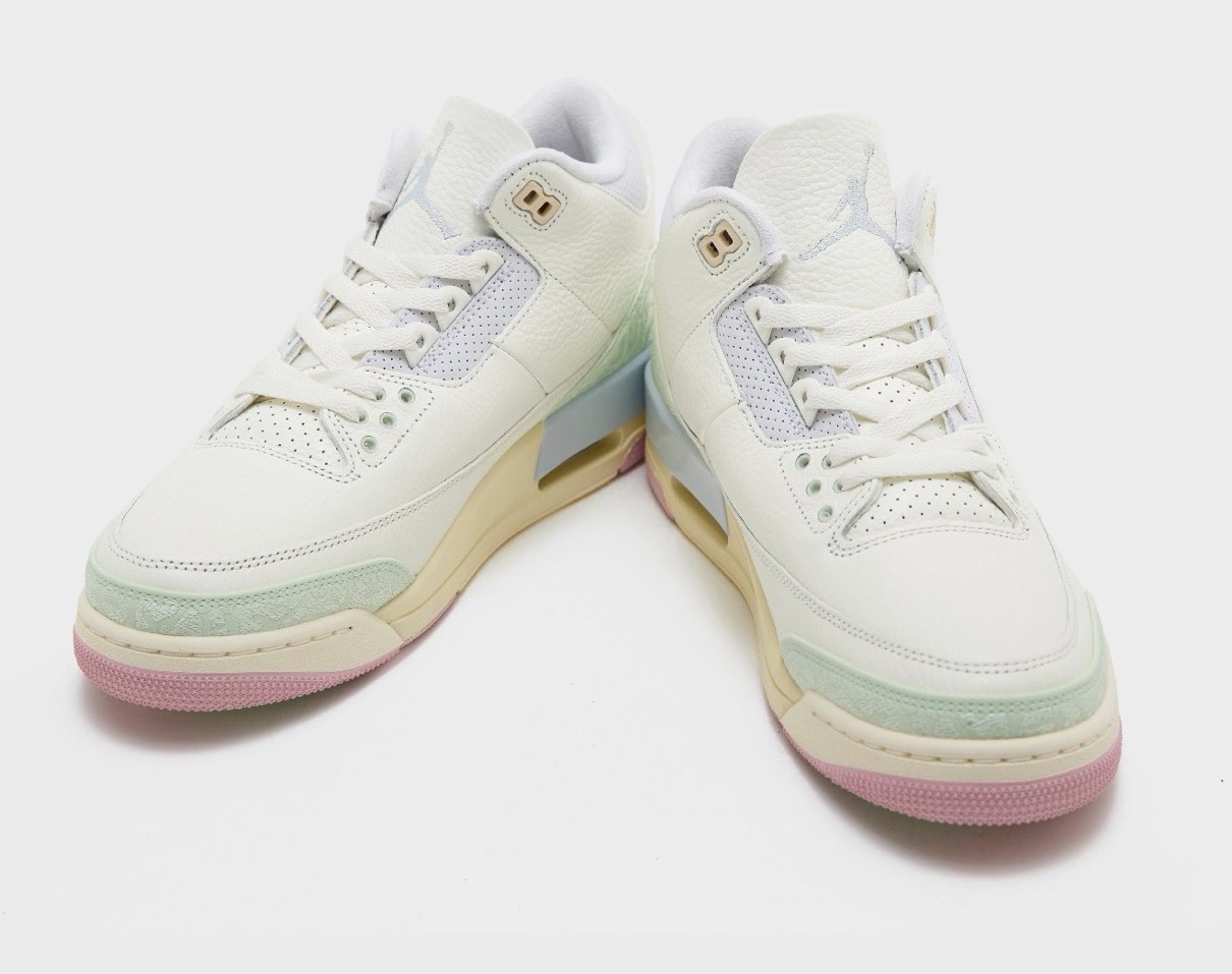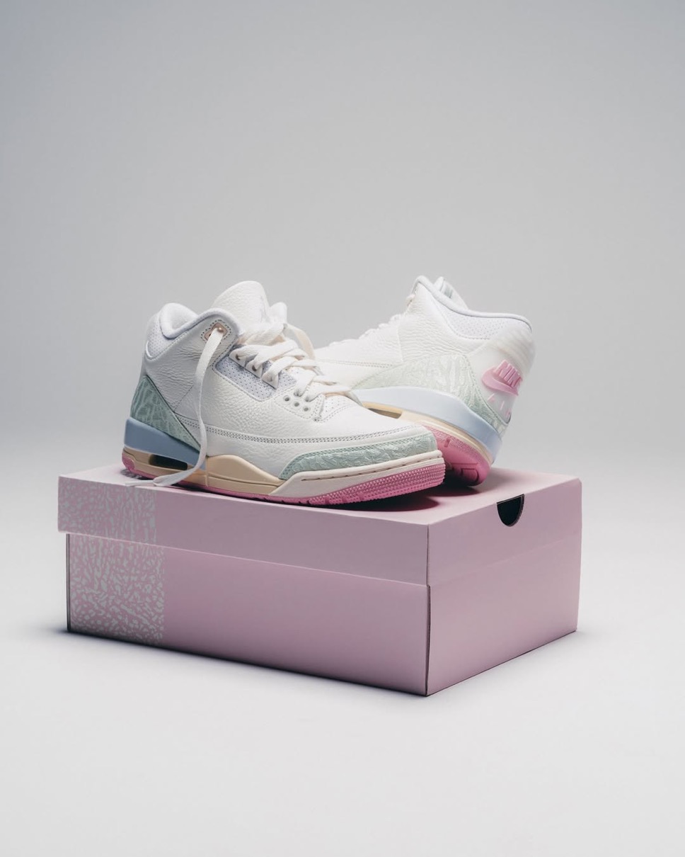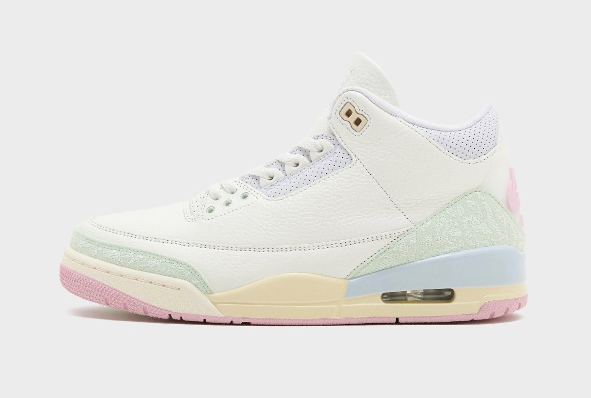 伝説的シューズデザイナー Tinker Hatfield(ティンカー・ハットフィールド)がデザインを手がけ、1988年に初登場したモデル「Air Jordan 3(エアジョーダン3)」。今作ではセイル、ジェイドオーラ、オーラ、アイスドカーミン、モスリン、アイリッシュウィスパーといった春らしいパステルなカラーパレットを採用。ヒールに配されたオリジナル仕様の『Nike Air』ロゴが、クラシックなアイデンティティを表現している。