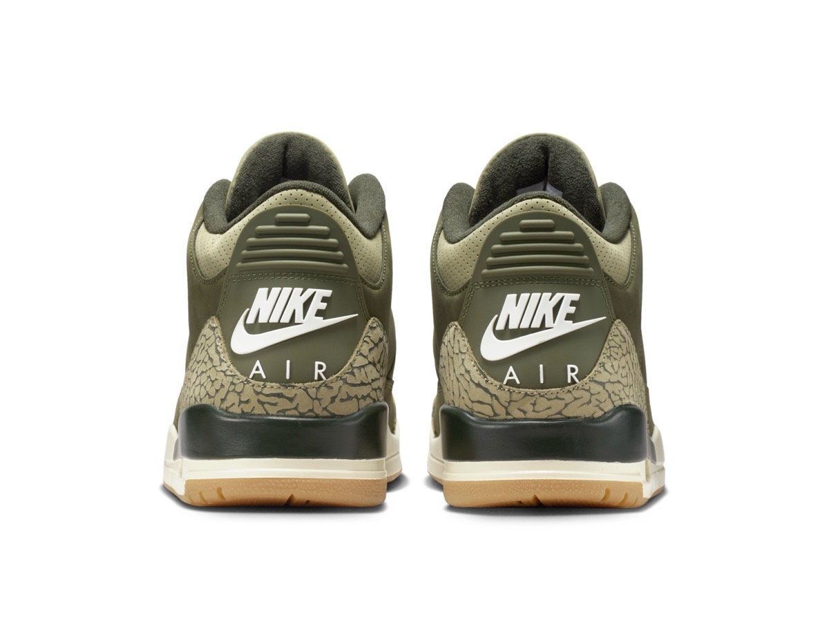 伝説的シューズデザイナー Tinker Hatfield(ティンカー・ハットフィールド)がデザインを手がけ、1988年に初登場したモデル「Air Jordan 3(エアジョーダン3)」。新たに登場する今作は、リアルツリーカモにインスパイアされたミディアムオリーブ/セコイア/ニュートラルオリーブといったミリタリーなカラースキームを纏った一足。ヒールにはオリジナル仕様の“Nike Air”ロゴが配置される。