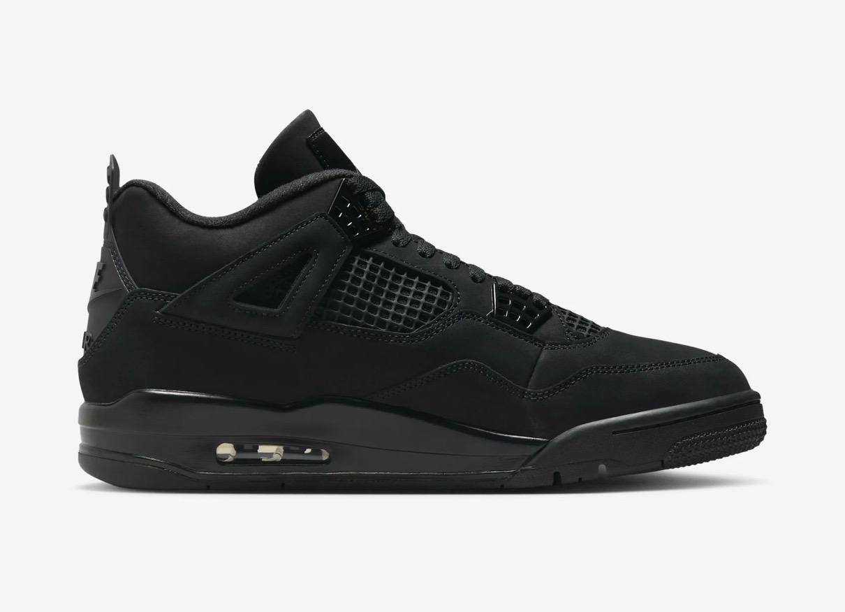 オールブラックの人気作 ナイキ ジョーダンブランド AJ4(エアジョーダン4) レトロ “ブラックキャット”がNikeAirロゴで復活。ファミリーサイズで展開。[FV5029-010]