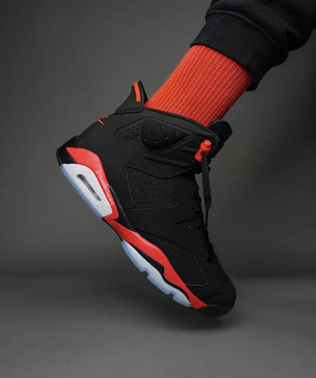 黒赤人気OGカラーのサンプルオマージュモデル ナイキ ジョーダンブランド AJ6(エアジョーダン6) レトロ “リバースインフラレッド”が登場。[CT8529-001]