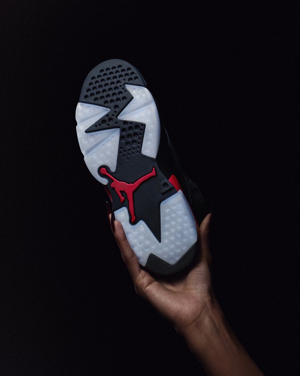 Michael Jordan(マイケル・ジョーダン)の6代目シグネチャーモデルとして1991年に初登場した「Air Jordan 6(エアジョーダン6)」。今回リリースされるのは、1991年にリリースされたOGカラーのうちの一つ通称“Black Infrared”をベースとした1999年のサンプルモデル“Infrared Salesman”をオマージュした一足。ブラックのデュラバックアッパーにインフラレッドのアクセントを落とし込み、ヒールにはオリジナルとは配色の異なった赤いNike Airロゴが刺繍されている。なお、今作では非コラボAJ6では初となる1991年OGモデルのシェイプを採用しており、MJが着用していたペアのようなロングタン、サンプルにインスパイアされたハングタグ、スタンプ、パッケージングなどを備えている。履き口の内側に刻まれた「Not For Resale」のスタンプが、その物語を締めくくる。