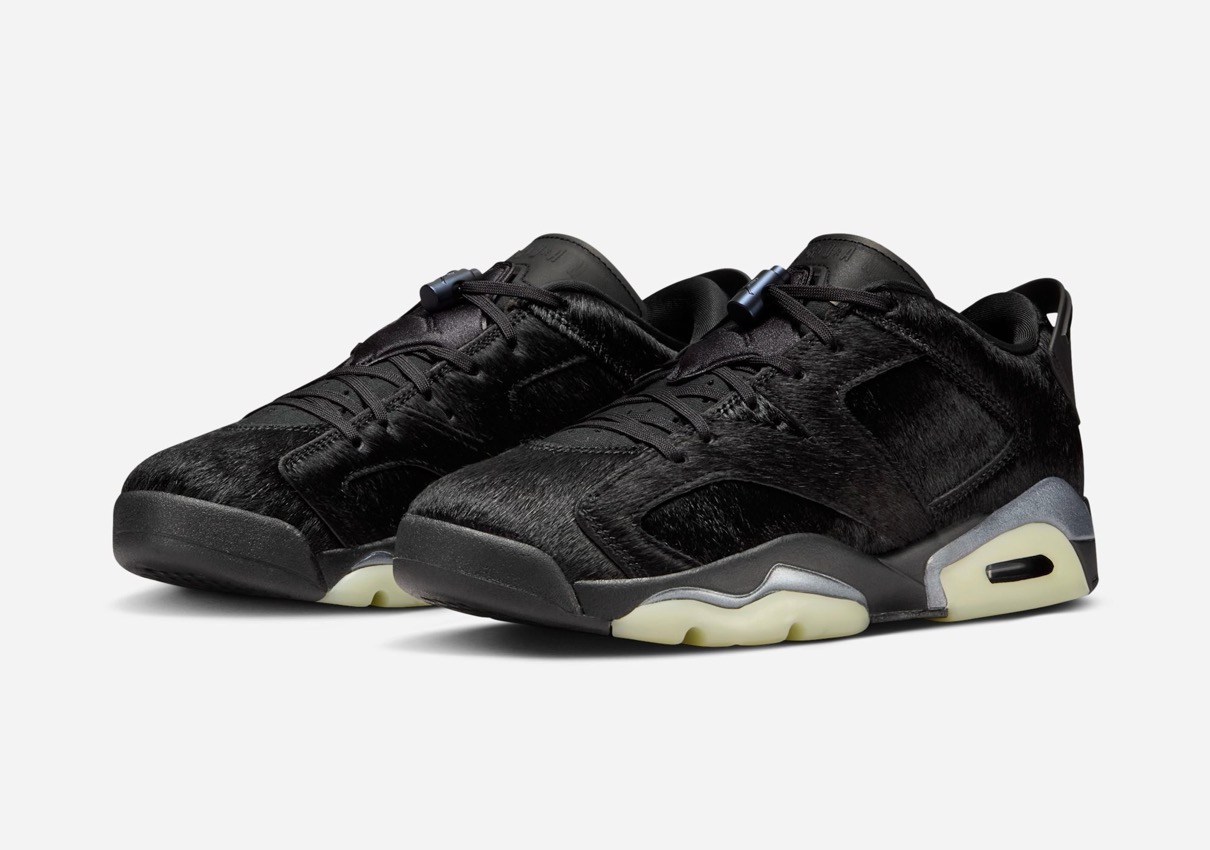 Michael Jordan(マイケル・ジョーダン)の6代目シグネチャーモデルとして1991年に初登場した「Air Jordan 6(エアジョーダン6)」。今作ではローカットモデルをベースに、アッパーをブラックのポニーヘアで構築。ミッドソールにはシルバーのアクセントを取り入れている。