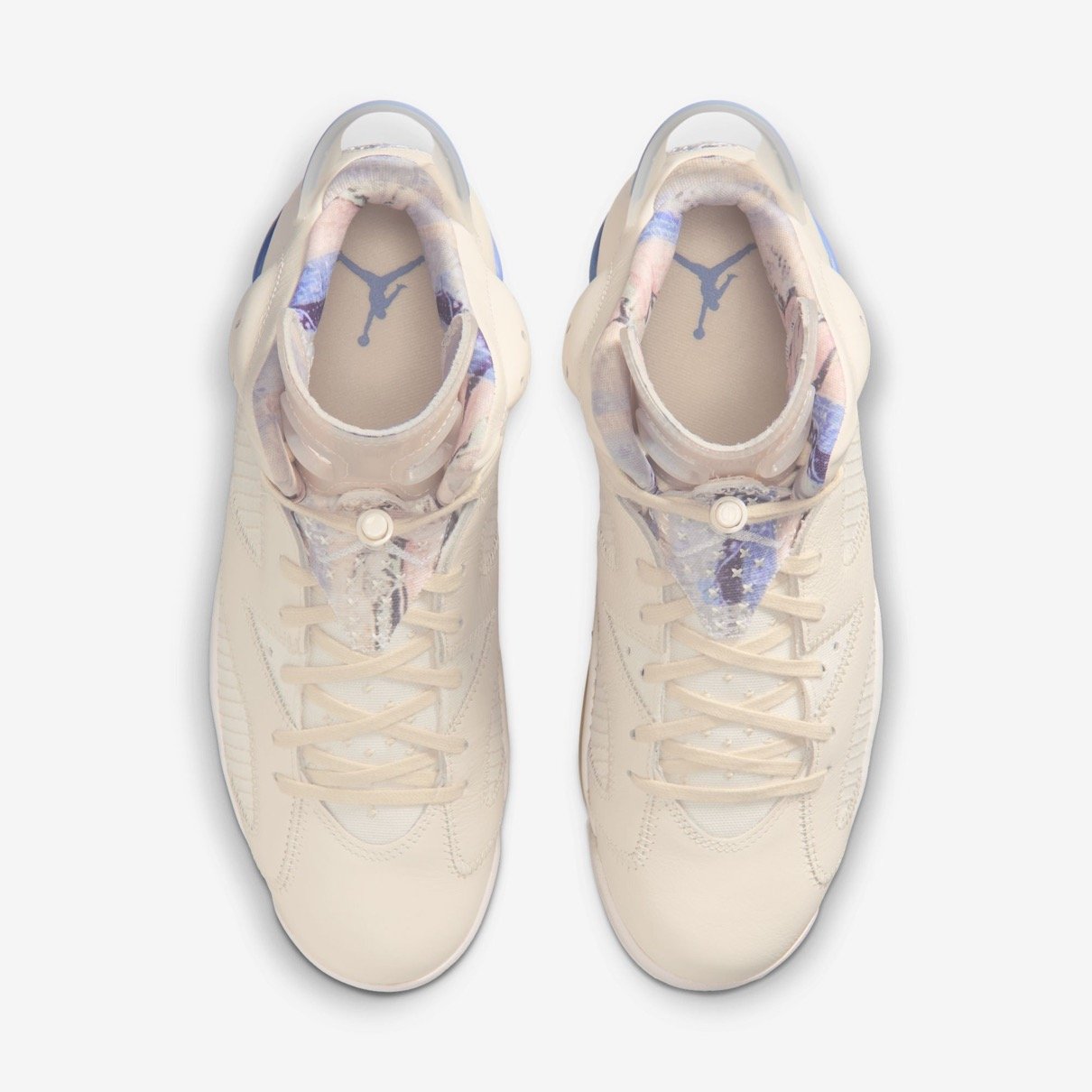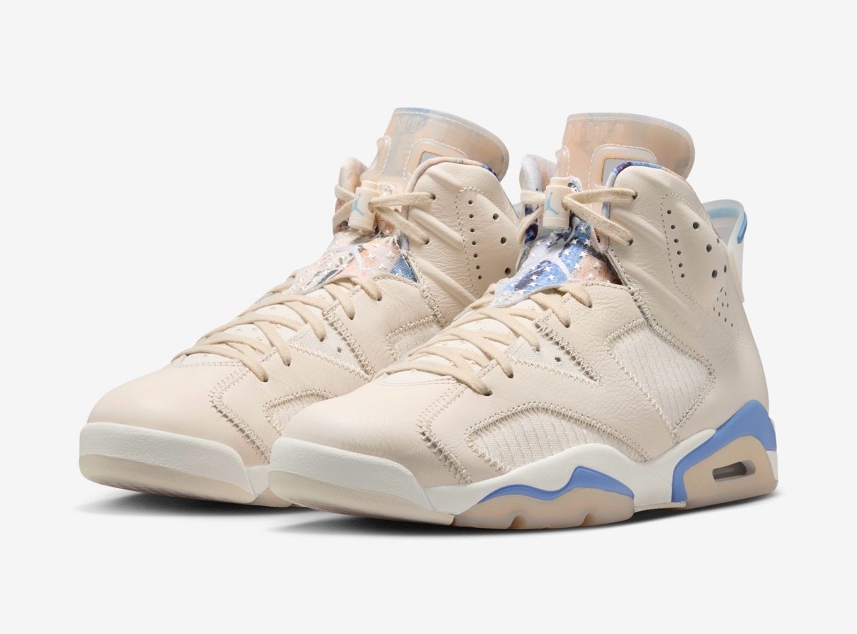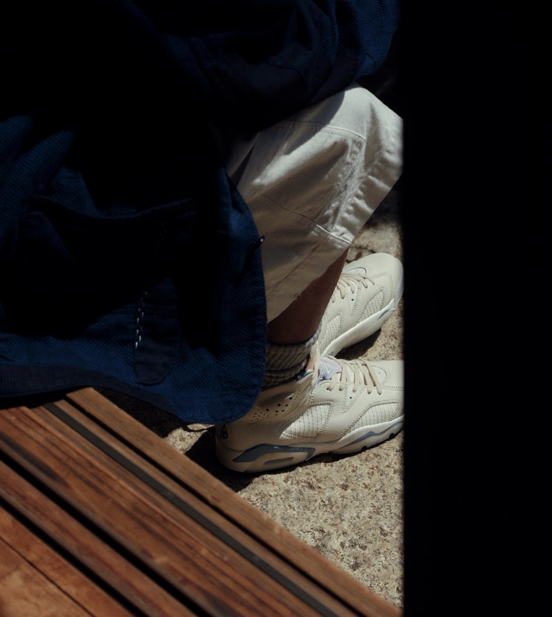 Michael Jordan(マイケル・ジョーダン)の6代目シグネチャーモデルとして1991年に誕生した「Air Jordan 6(エアジョーダン6)」。モデルの35周年を迎えるアニバーサリーイヤーに、地域限定の新作が登場。ベージュのレザーアッパーに淡いブルーのアクセントを落とし込み、随所に幾何学模様等の図柄を刺繍で表現した伝統工芸「“刺し子”(Sashiko)」のディテールを施している。