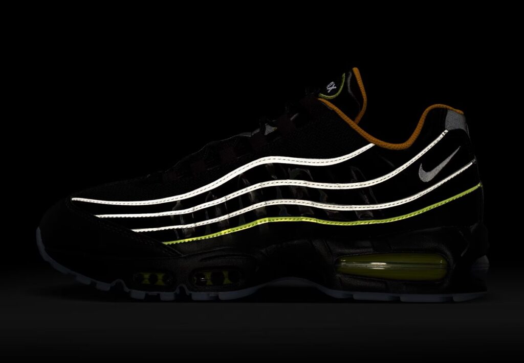 1995年に初めてリリースされ、シューズデザイナーのセルジオ・ロザーノが人体の背骨からインスピレーションを得てデザインしたナイキの人気スニーカー「エアマックス95(Air Max 95)」。同モデルの30周年を記念し、Nike Airユニットとウィンドウが大きい最初期型シルエット 通称“Big Bubble”(ビッグバブル)が復活。ワールドカップ開催を祝した今作ではブラックカラーを基調としており、エア マックス 95の特徴的なウェーブパネルに沿って再帰反射素材が配され、暗い背景とのコントラストを生み出しつつ視認性を高めている。ヒール付近には小さなホワイトのスウッシュがさりげないアクセントを加え、ゴールドのインナーカラーは韓国の国旗の色から着想を得た洗練されたタッチを演出している。