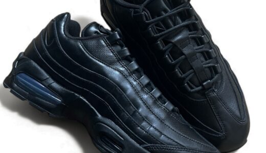 1995年に初めてリリースされ、シューズデザイナーのセルジオ・ロザーノが人体の背骨からインスピレーションを得てデザインしたナイキの人気スニーカー「エアマックス95(Air Max 95)」。同モデルの30周年を記念し、Nike Airユニットとウィンドウが大きい最初期型シルエット 通称“Big Bubble”(ビッグバブル)がAM1に続き復活を果たす。今作ではアッパーをラグジュアリーなレザー素材で構築。ヒールサイドやヒールのスウッシュロゴは型押しで表現し、カラーは無骨なオールブラックで仕上げている。