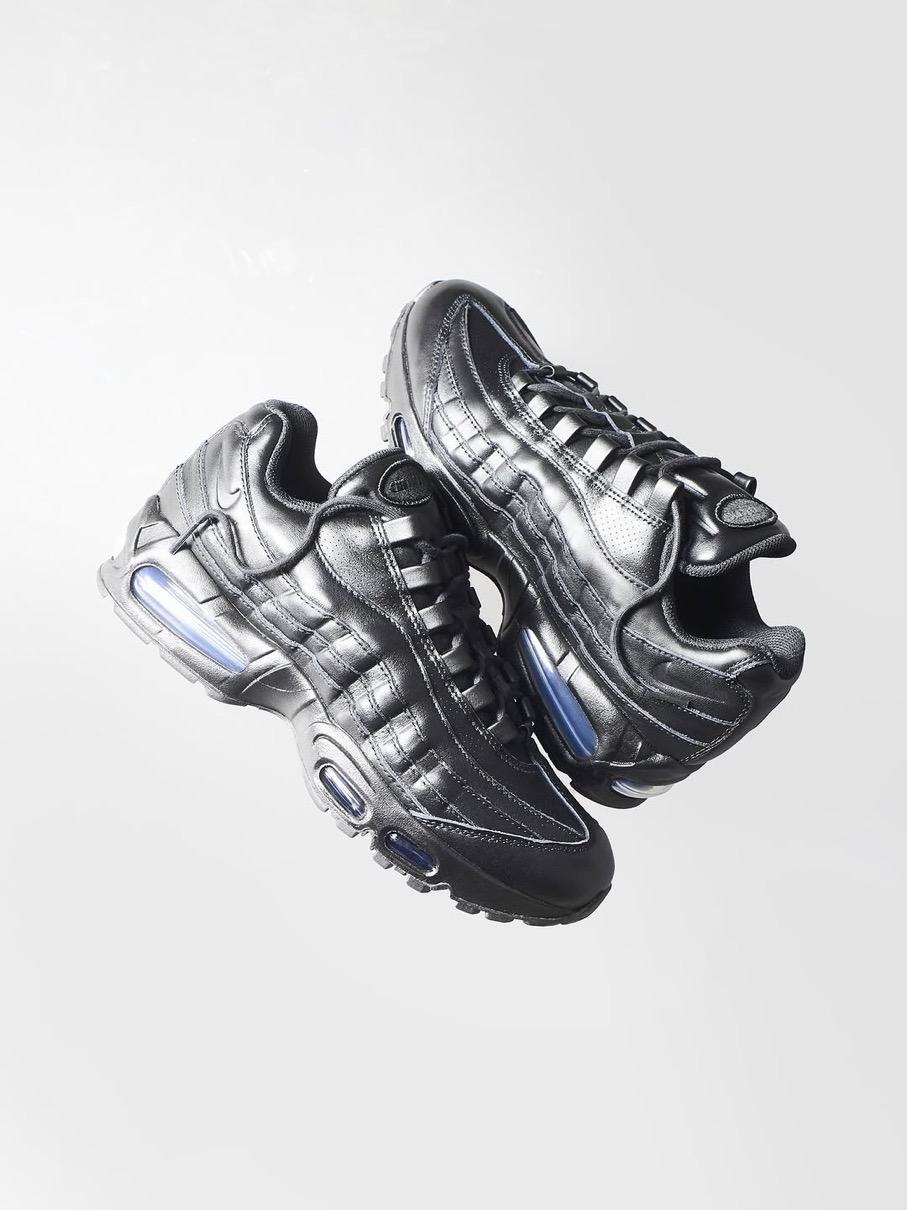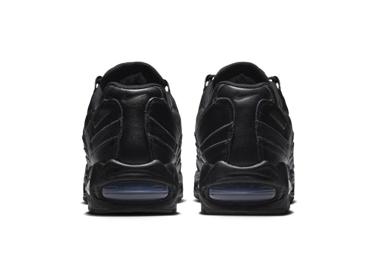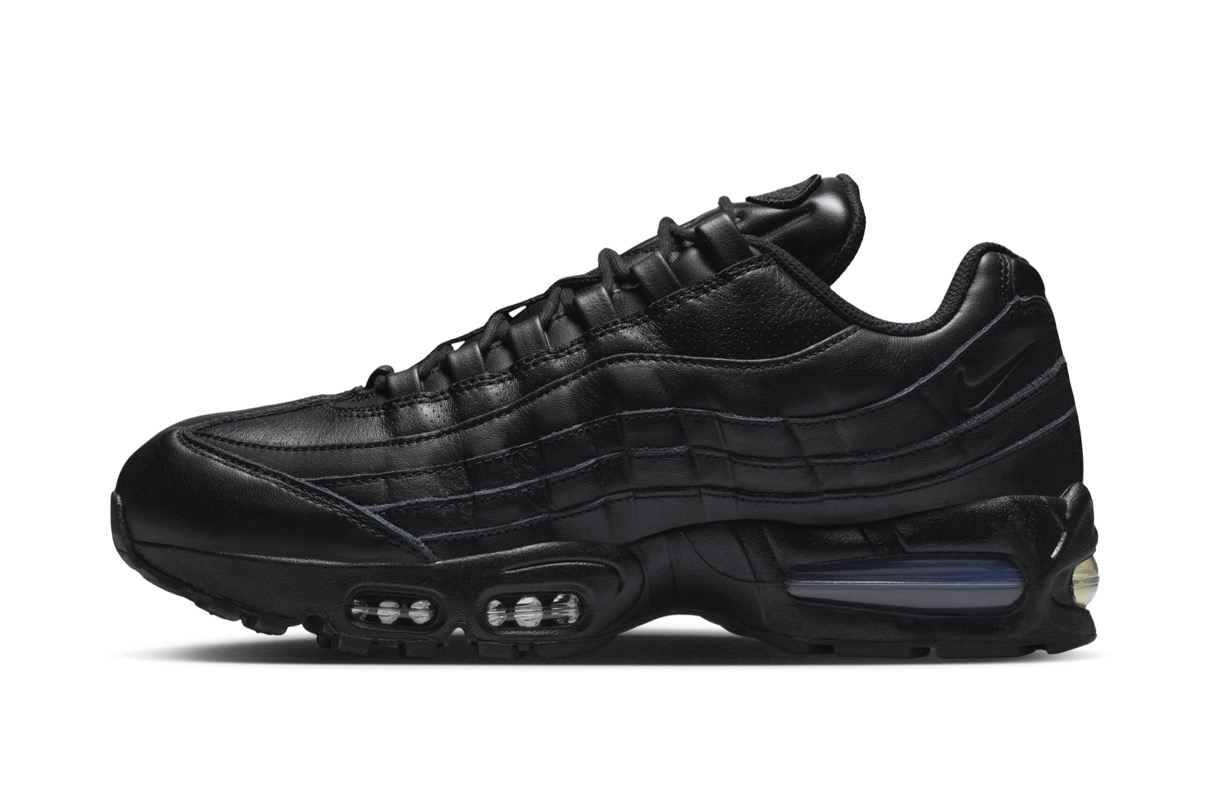 1995年に初めてリリースされ、シューズデザイナーのセルジオ・ロザーノが人体の背骨からインスピレーションを得てデザインしたナイキの人気スニーカー「エアマックス95(Air Max 95)」。同モデルの30周年を記念し、Nike Airユニットとウィンドウが大きい最初期型シルエット 通称“Big Bubble”(ビッグバブル)がAM1に続き復活を果たす。今作ではシュータンやシューレースパイプを含むアッパー細部までをラグジュアリーなレザー素材で構築。ヒールサイドやヒールのスウッシュロゴは型押しで表現し、カラーは無骨なオールブラックで仕上げている。