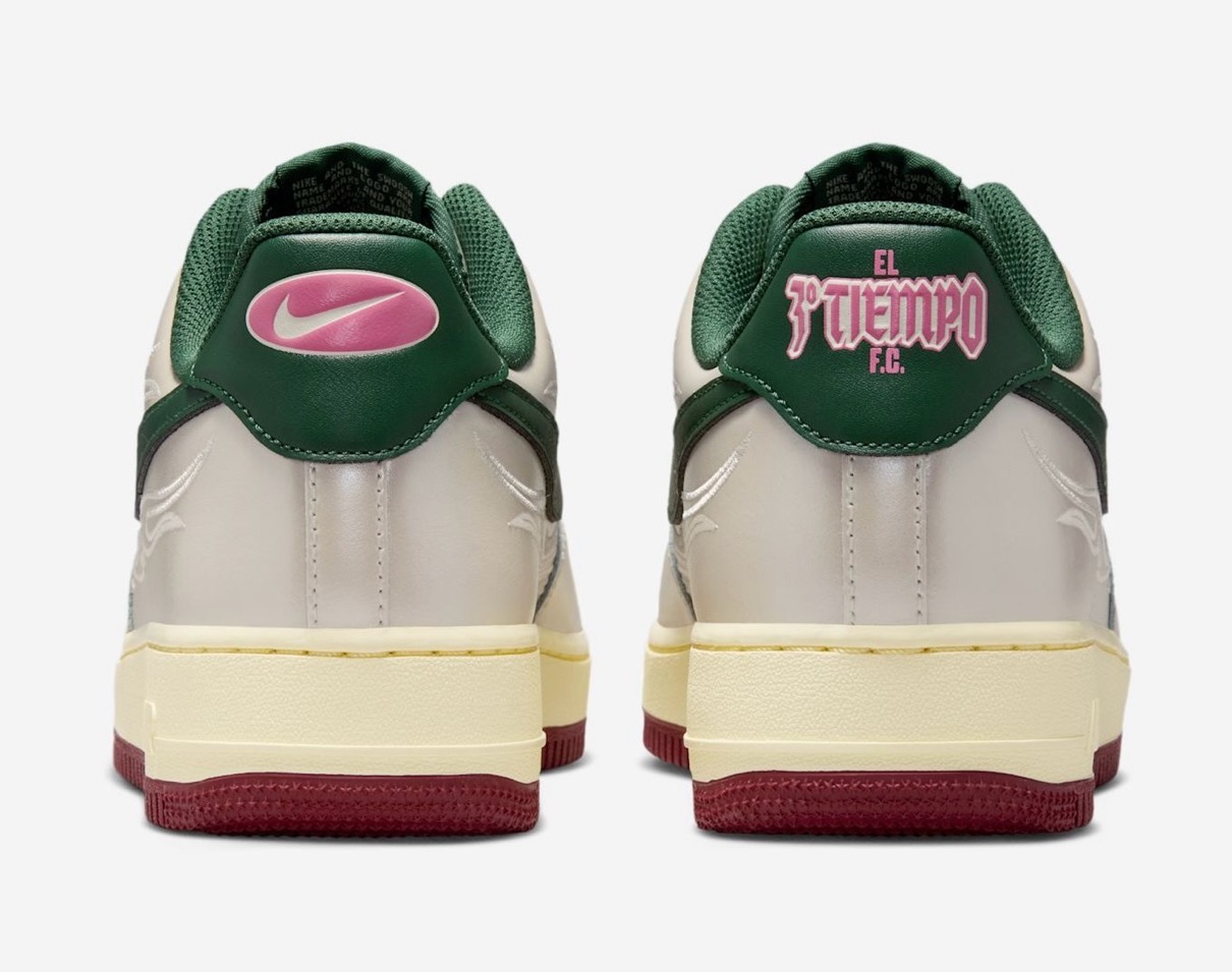 メキシコ国旗を象徴する白・赤・緑のカラーを基調とし、ヒールには鮮やかなピンク調で「MEXICO」や「EL TIEMPO FC」の文字が刻印。インソールには「Amor Que No Se Apaga(消えることのない愛)」のフレーズが刻まれ、伝統と文化に根ざした不滅の情熱を強調している。サイドパネルに沿ったファイヤーパターンは、メキシコのプロレス“ルチャ・リブレ”で戦う男性レスラー“ルチャドール”のマスクを彷彿とさせる。