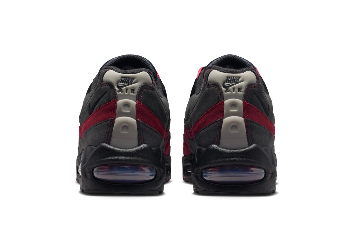 1995年に初めてリリースされ、シューズデザイナーのセルジオ・ロザーノが人体の背骨からインスピレーションを得てデザインしたナイキの人気スニーカー「エアマックス95(Air Max 95)」。同モデルの30周年を記念し、Nike Airユニットとウィンドウが大きい最初期型シルエット 通称“Big Bubble”(ビッグバブル)がAM1に続き復活。今回登場するカラーは、ブラックにチームクリムゾンレッドのラインとシューレースパイプが映える一足。