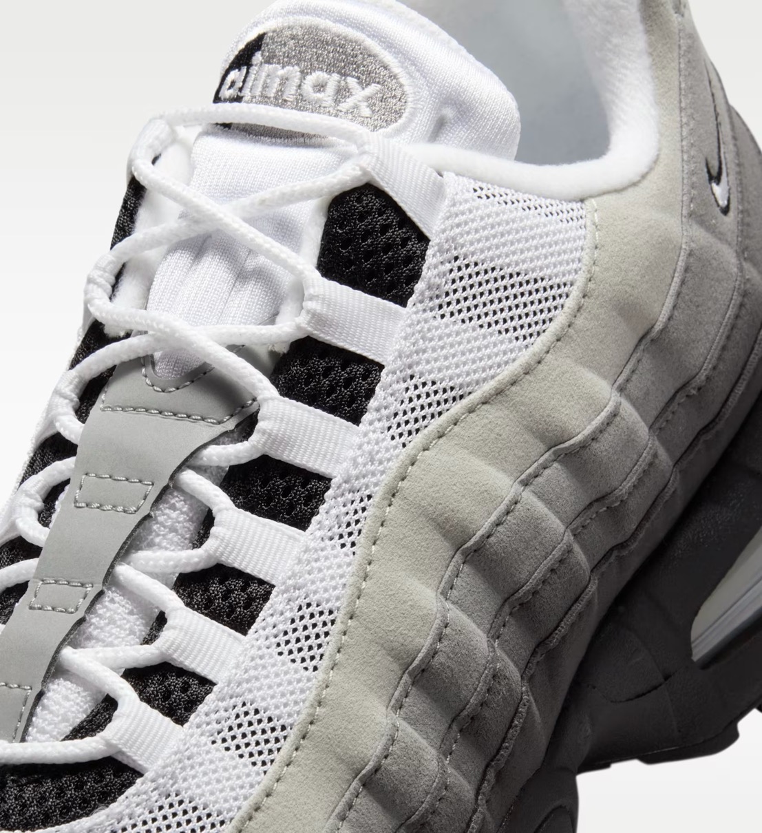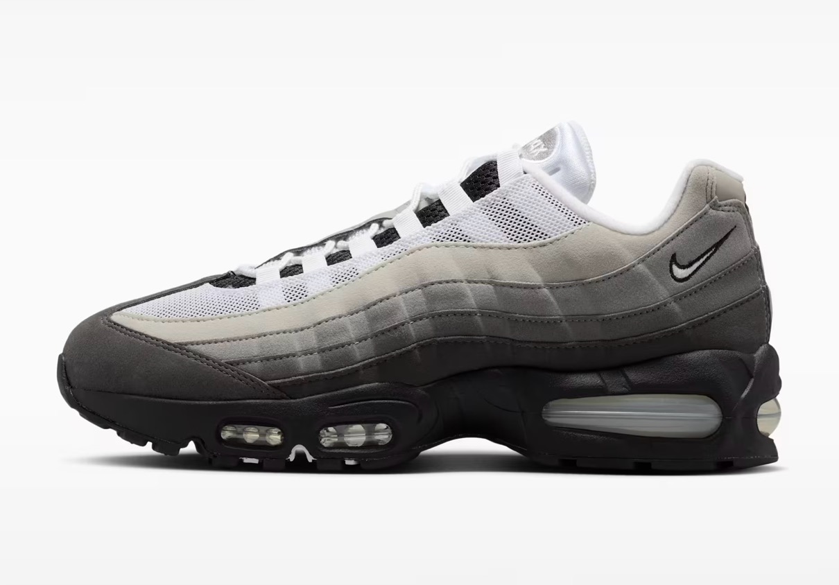 1995年に初めてリリースされ、シューズデザイナーのセルジオ・ロザーノが人体の背骨からインスピレーションを得てデザインしたナイキの人気スニーカー「エアマックス95(Air Max 95)」。同モデルの30周年を記念し、Nike Airユニットとウィンドウが大きい最初期型シルエット 通称“Big Bubble”(ビッグバブル)がAM1に続き復活を果たした。今回の一足では、「ネオン」や「ブライトマンダリン」などの人気クラシックモデルを彷彿とさせるグレーのグラデーションパネルでアッパーを構成。アッパーはライナーのホワイトからクリーム、ライトグレーといったトーナルカラーで仕上げ、チャコールのトゥ、ブラックのミッドソールへ移り変わっていく。