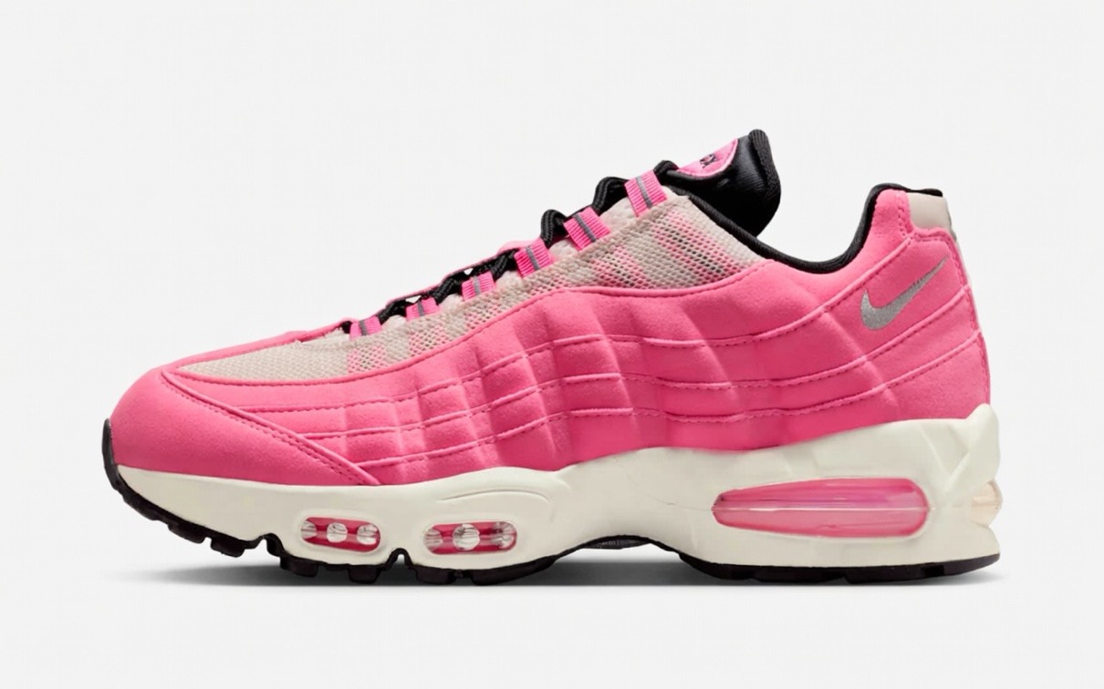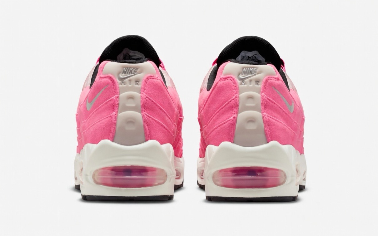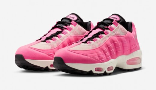 1995年に初めてリリースされ、シューズデザイナーのセルジオ・ロザーノが人体の背骨からインスピレーションを得てデザインしたナイキの人気スニーカー「エアマックス95(Air Max 95)」。同モデルの30周年を記念し、Nike Airユニットとウィンドウが大きい最初期型シルエット 通称“Big Bubble”(ビッグバブル)が復活。今作では、ピンクのスウェードアッパーにセイルのミッドソールやメッシュのディテールを組み合わせている。