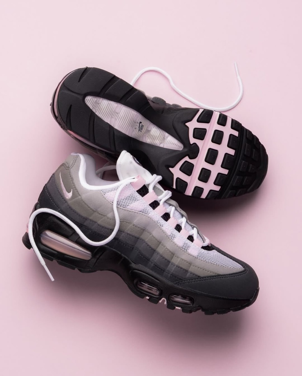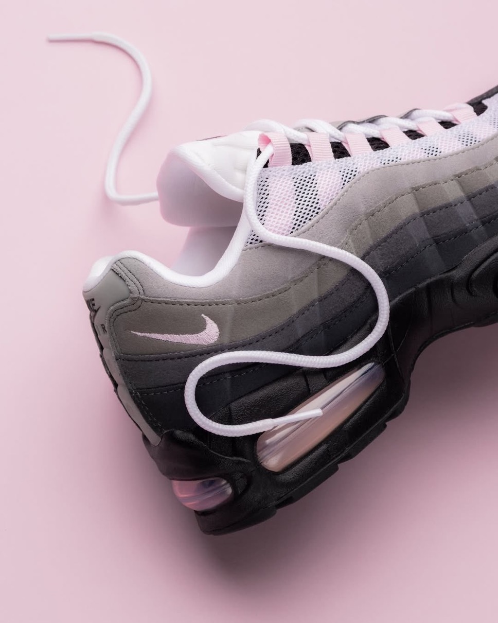 1995年に初めてリリースされ、シューズデザイナーのセルジオ・ロザーノが人体の背骨からインスピレーションを得てデザインしたナイキの人気スニーカー「エアマックス95(Air Max 95)」。同モデルの30周年を記念し、Nike Airユニットとウィンドウが大きい最初期型シルエット 通称“Big Bubble”(ビッグバブル)がAM1に続き復活を果たす。カラーはオリジナルを彷彿とさせるグレーのグラデーションアッパーに、ピンクフォームのアクセントを落とし込んでいる。