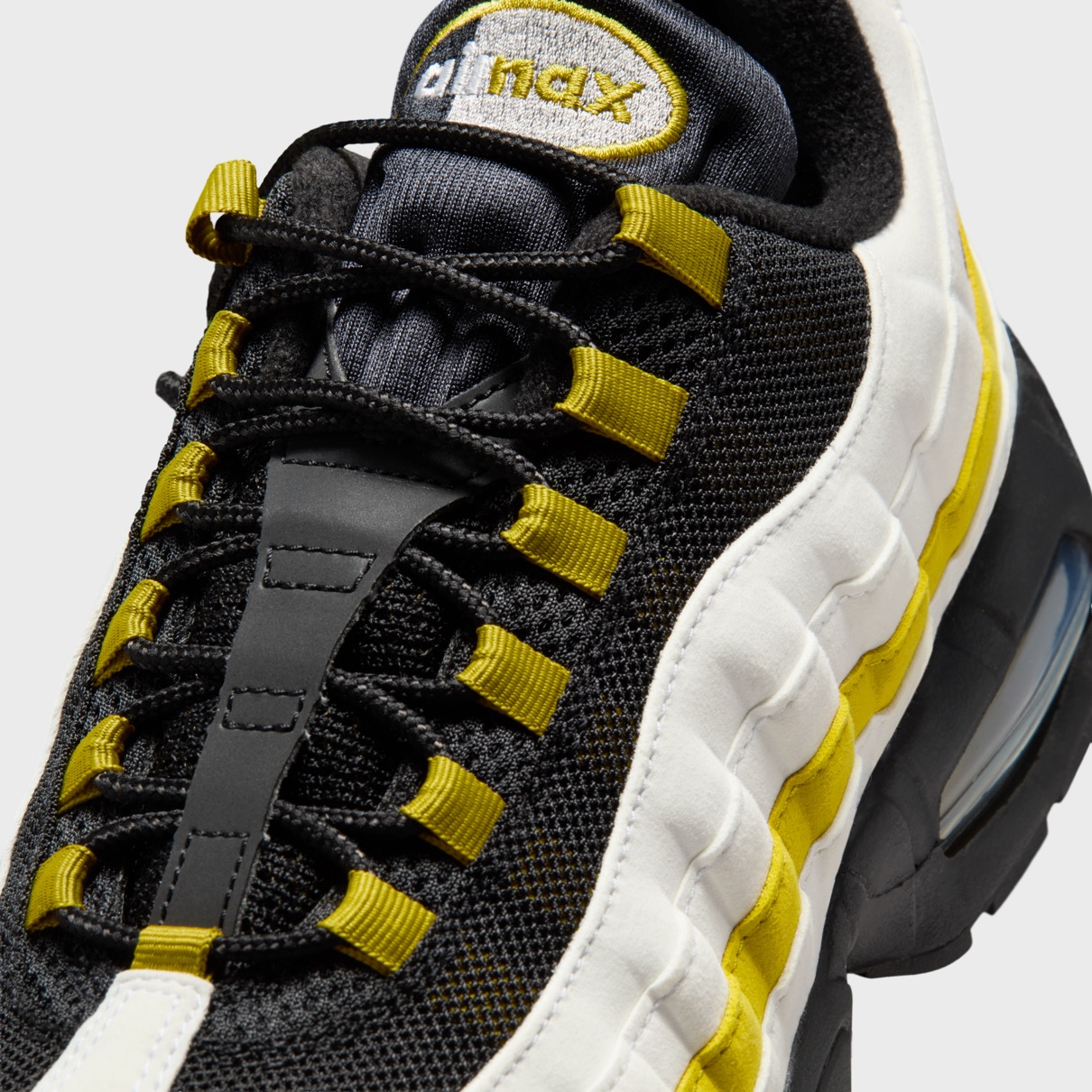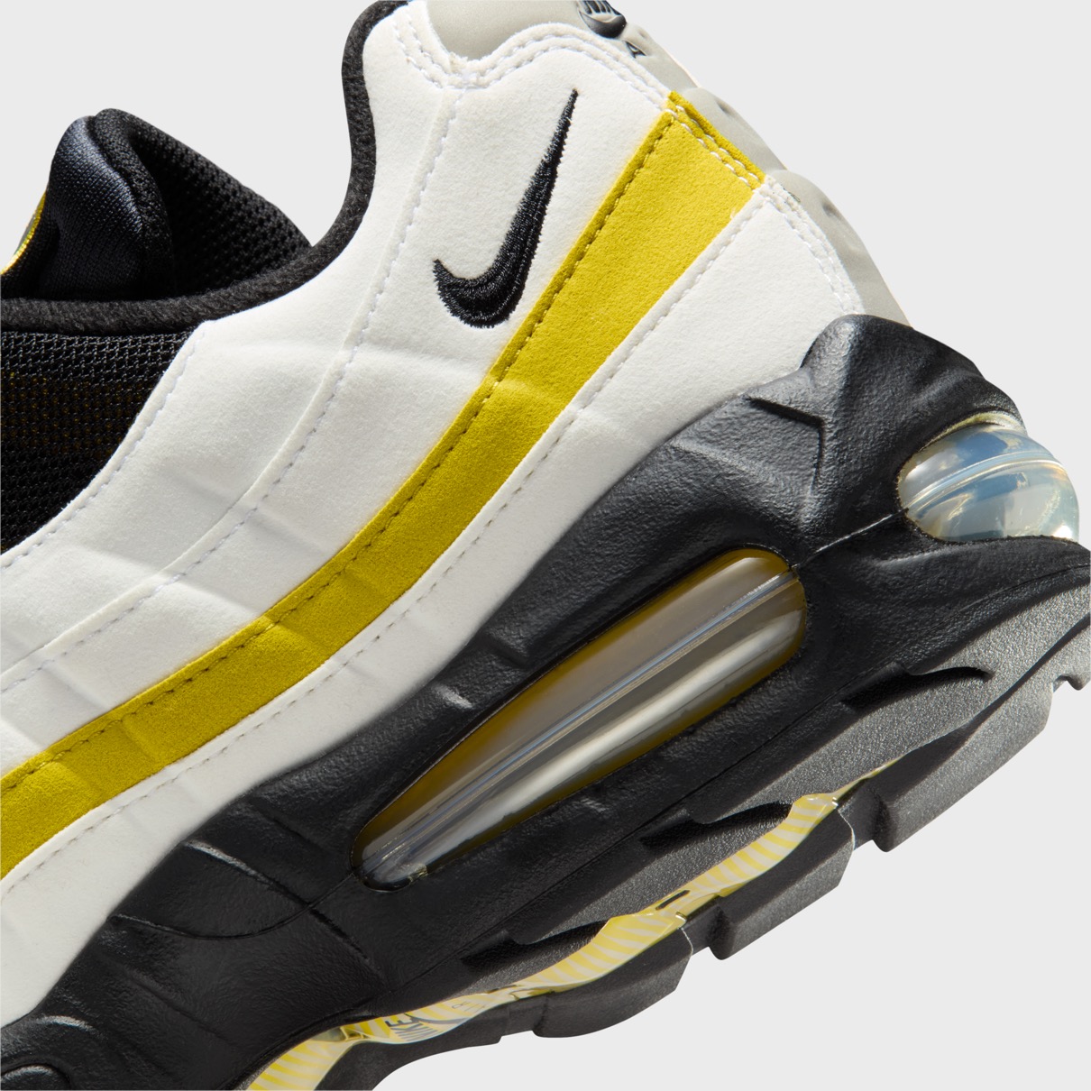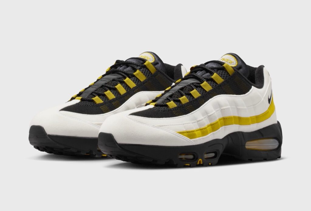 ナイキ エアマックス95(AM95) ビッグバブル “サフランクォーツ”が登場。ホワイト&ブラックにイエローのアクセントで仕上げた新作。[HM4740-102]