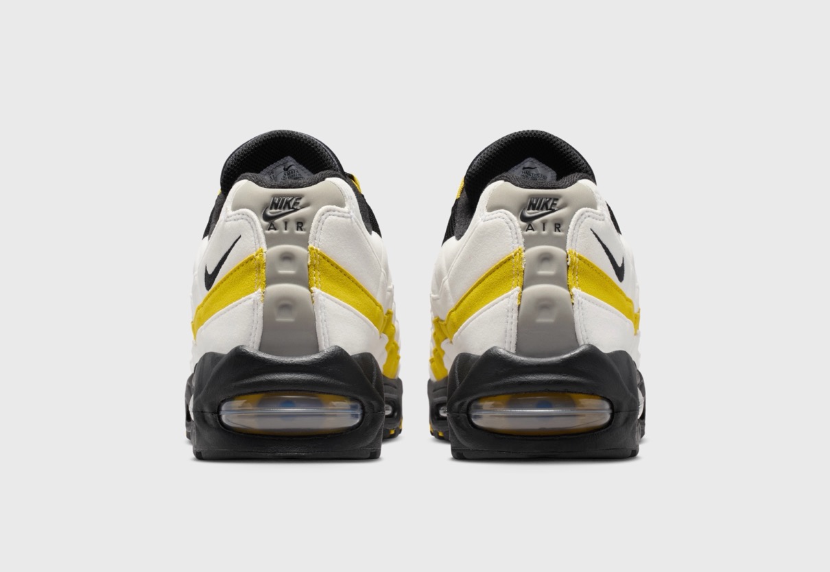 1995年に初めてリリースされ、シューズデザイナーのセルジオ・ロザーノが人体の背骨からインスピレーションを得てデザインしたナイキの人気スニーカー「エアマックス95(Air Max 95)」。同モデルの30周年を記念し、Nike Airユニットとウィンドウが大きい最初期型シルエット 通称“Big Bubble”(ビッグバブル)がAM1に続き復活を果たした。今回の一足では、ホワイト&ブラックのアッパーにサフランクォーツイエローのアクセントで仕上げている。