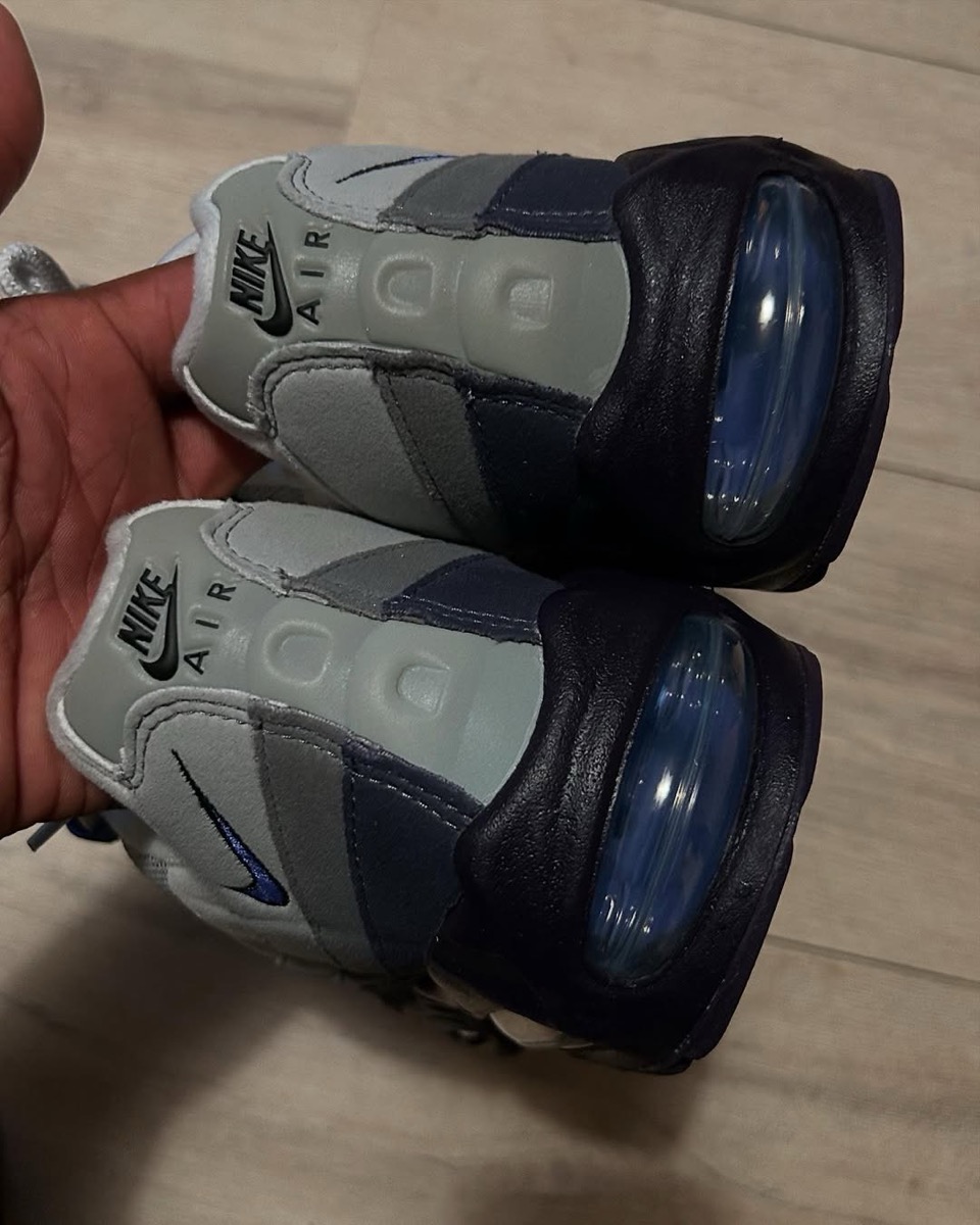 1995年に初めてリリースされ、シューズデザイナーのセルジオ・ロザーノが人体の背骨からインスピレーションを得てデザインしたナイキの人気スニーカー「エアマックス95(Air Max 95)」。同モデルの30周年を記念し、Nike Airユニットとウィンドウが大きい最初期型シルエット 通称“Big Bubble”(ビッグバブル)がAM1に続き復活を果たした。今回の一足では、「ネオン」や「ブライトマンダリン」といった人気クラシックモデルと同じグレーのグラデーションパネルでアッパーを構成。パープル系カラーのアクセントがアイレット、タンロゴ、ヒールサイドのスウッシュに施され、ミッドソールはダークレーズンでペイント。大型エアユニット内部にはサファイアブルーのカラーが採用された。