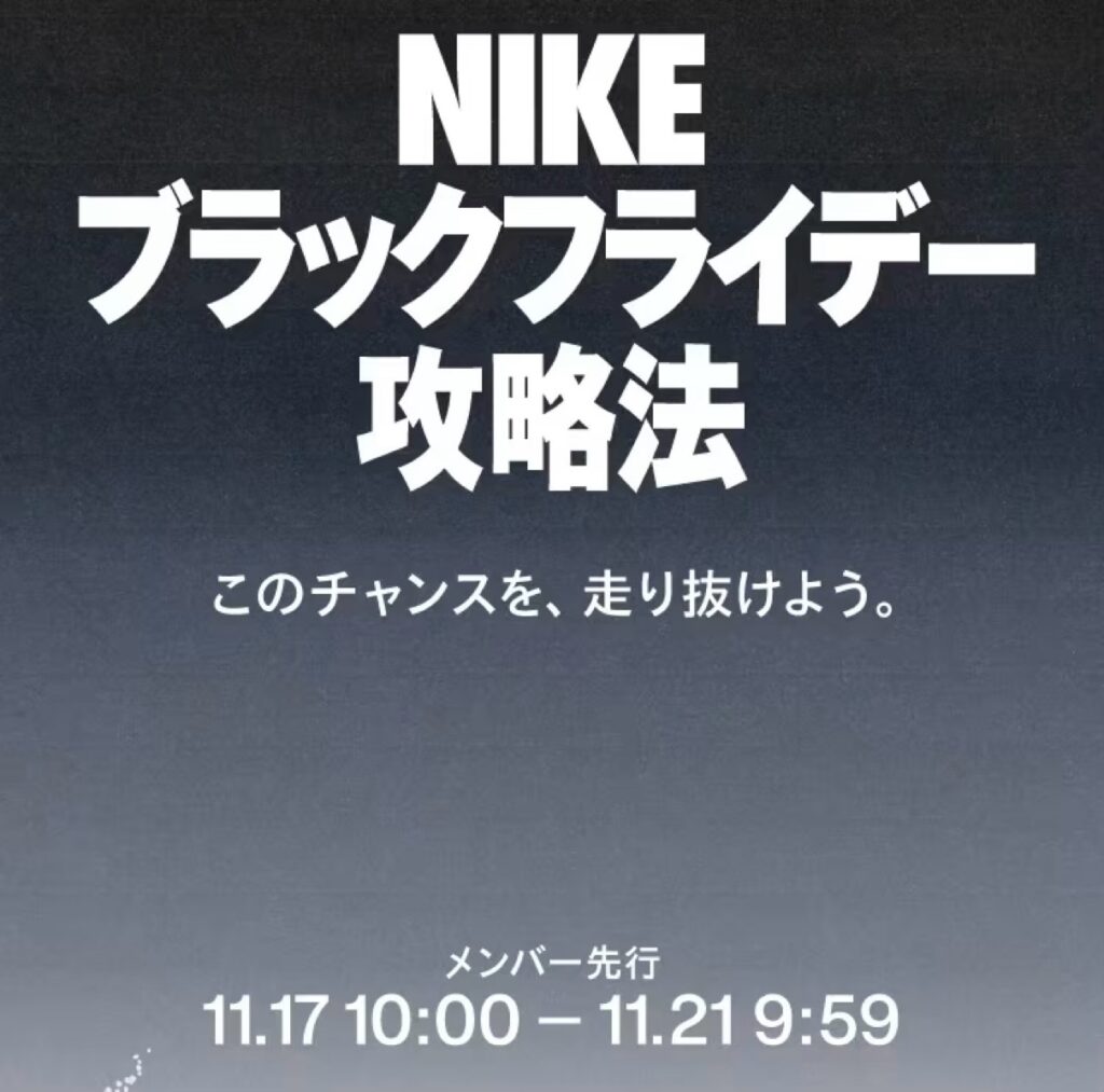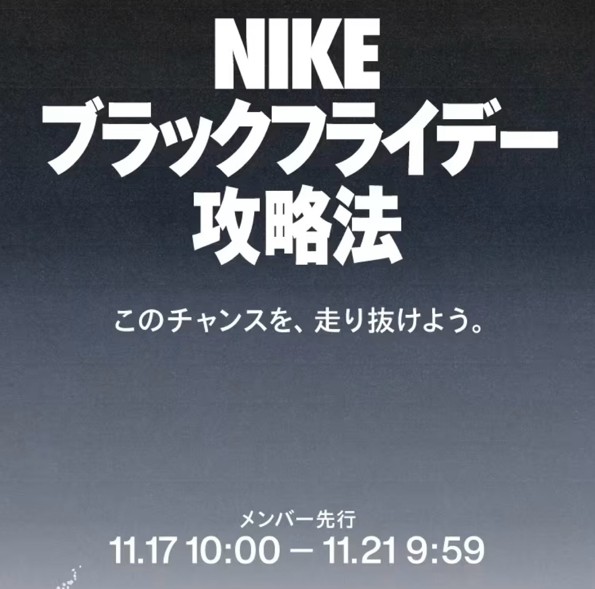 ナイキのブラックフライデーセール2025が到来。人気スニーカーやアパレルをお得にゲットできる大チャンス。今年はナイキ公式からの“攻略法”も。