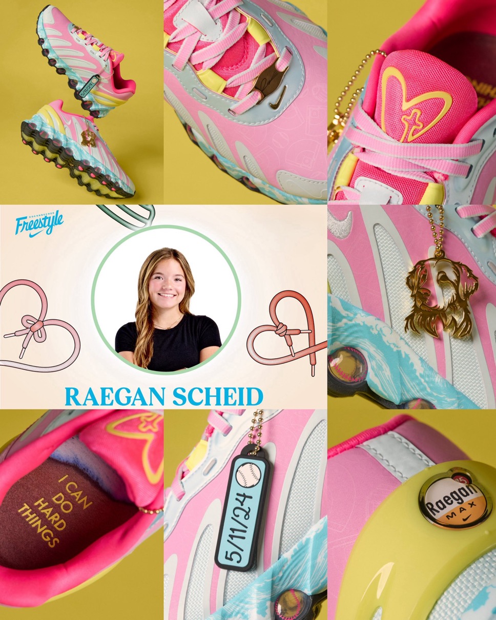 このナイキ エア マックス DN8 “レイガン・シャイド”は、強さ、忍耐力、情熱へのオマージュ。開胸手術からの回復を経て、レイガンは自身の二つの愛—ソフトボールとビーチ—を融合させ、完璧なエンパワーメントスニーカーを創造したいと考えた。アッパーの反射性ソフトボールグラフィック、エアバブルを横切るステッチ、タン部分のハートロゴからインスピレーションを得ている。ミッドソールに描かれた海の波紋は、レイガンにとって世界で最も大切な場所であるビーチを象徴。かかとタブのキーチェーンにはレイガンのゴールデンレトリバー「ブルー」が、そして「I CAN DO HARD THINGS(困難なこともやり遂げる)」という彼女のモットーが、周囲に強さを保つよう呼びかける。2024年5月11日、レイガンが競技場へ復帰した日を記念する「レイガンズ エアマックス Dn8」は、強さ、創造性、そしてカムバック精神へのオマージュである。