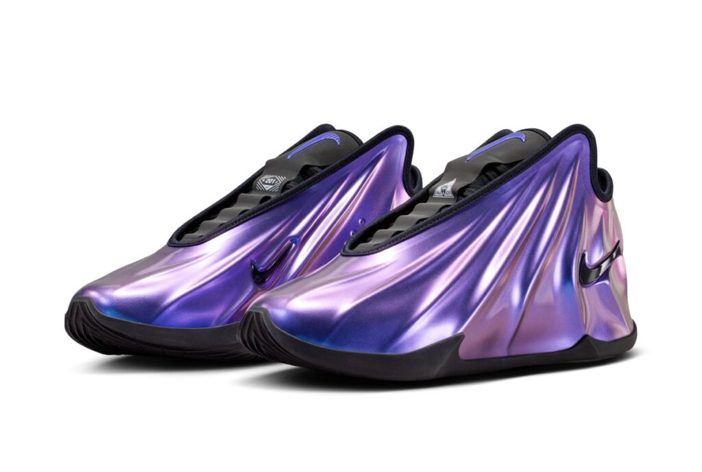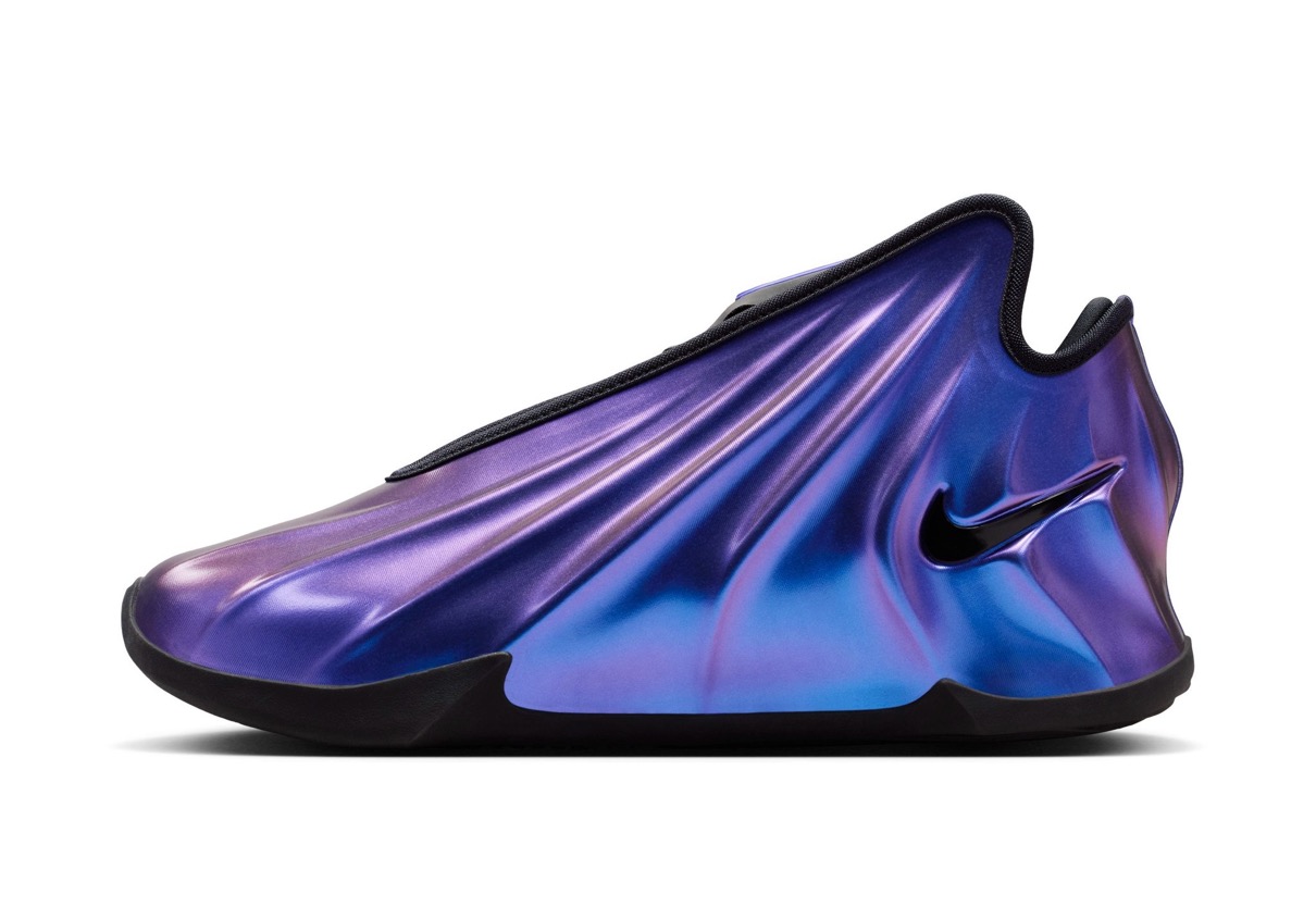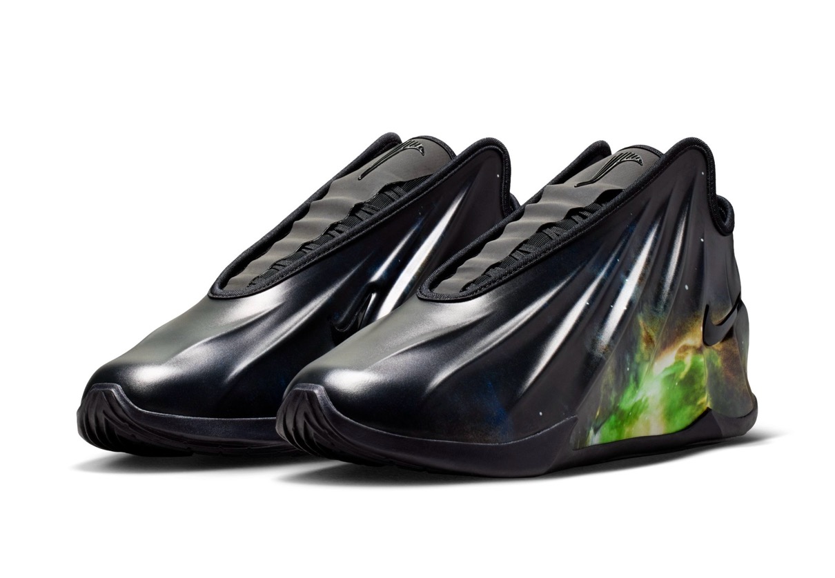 「Greater Than(より強く)」という考えをベースにシリーズ化された“G.T.シリーズ”。今回登場するのは、その新型となる『G.T. Future(GT フューチャー)』。シリーズ最新作となるG.T. Futureは、2001年に誕生したZOOM HYPERFLIGHT(ズーム ハイパーフライト)を彷彿とさせる履き口や、Foamposite(フォームポジット)を想起させる美しい一体成型シェルアッパーが特徴的。ナイキのフットウェアデザイナーであるFrank Cooke(フランク・クック)は、2000年代初期のバスケットボールアーカイブからおなじみのデザイン要素を継承しつつ、“歴史を少し取り入れ、それを未来の光の中に置く”というヴィジョンから新たなモデルを作り上げた。カラーはブラックやメタリックシルバー、リフレクティブオレンジ、ライトニング、メタリックレッドブロンズ、サイキックパープル、宇宙空間のグラフィックを落とし込んだギャラクシーオーラなどが順次展開予定。