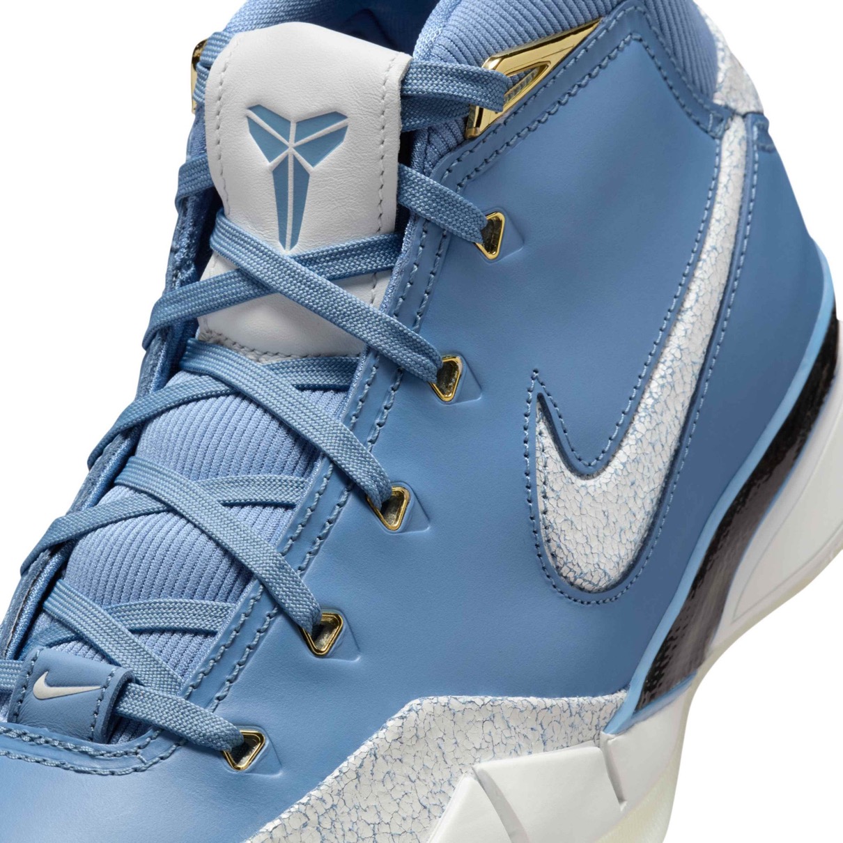 “ワークブルー”のカラーウェイを纏ったこの一足の着想源は、1972年にまで遡る。その年、レイカーズが NBA チャンピオンシップで優勝したことを受け、本拠地であるロサンゼルスのイングルウッドは“チャンピオンズシティ”と命名された。南カリフォルニアにおける優勝の黄金時代と評されるこの時代、コービー・ブライアントは、紫と金色のユニフォームを着た史上最高の選手の一人として、ロサンゼルスに栄光の火を灯し続けた。