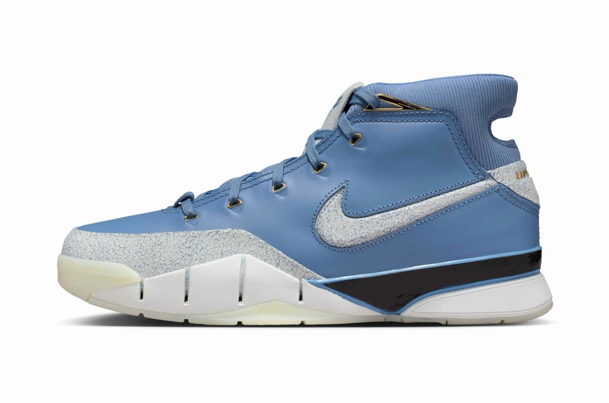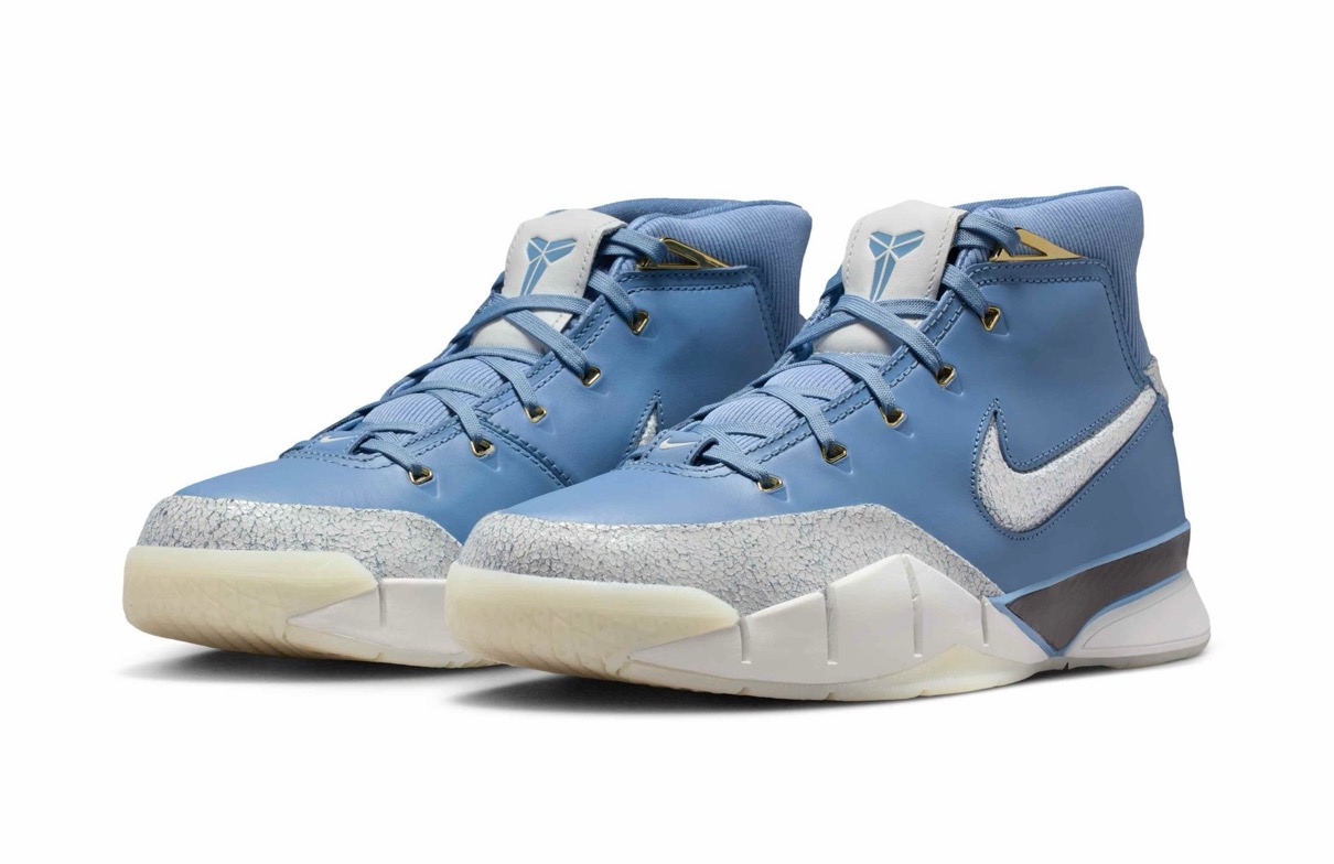 この Nike Kobe 1 Protro “City of Champions”は、コービーとカリフォルニア州イングルウッドの屋内競技場『ザ・フォーラム(The Forum)』の架け橋となることで、ロサンゼルスのチャンピオンシップの遺産に敬意を表している。この象徴的なアリーナは、1967年から1999年までロサンゼルス・レイカーズのホームとして親しまれていた。コービーの“City of Champions”カラーウェイは、ワークブルー、メタリックゴールド、サミットホワイトを特徴としており、スウッシュとマッドガードのひび割れた質感は、この古風なテーマをさらに引き立てている。アッパーとライニングは柔らかなブルーで、クリーンなホワイトのガムスタイルのアウトソールが全体を完成させている。