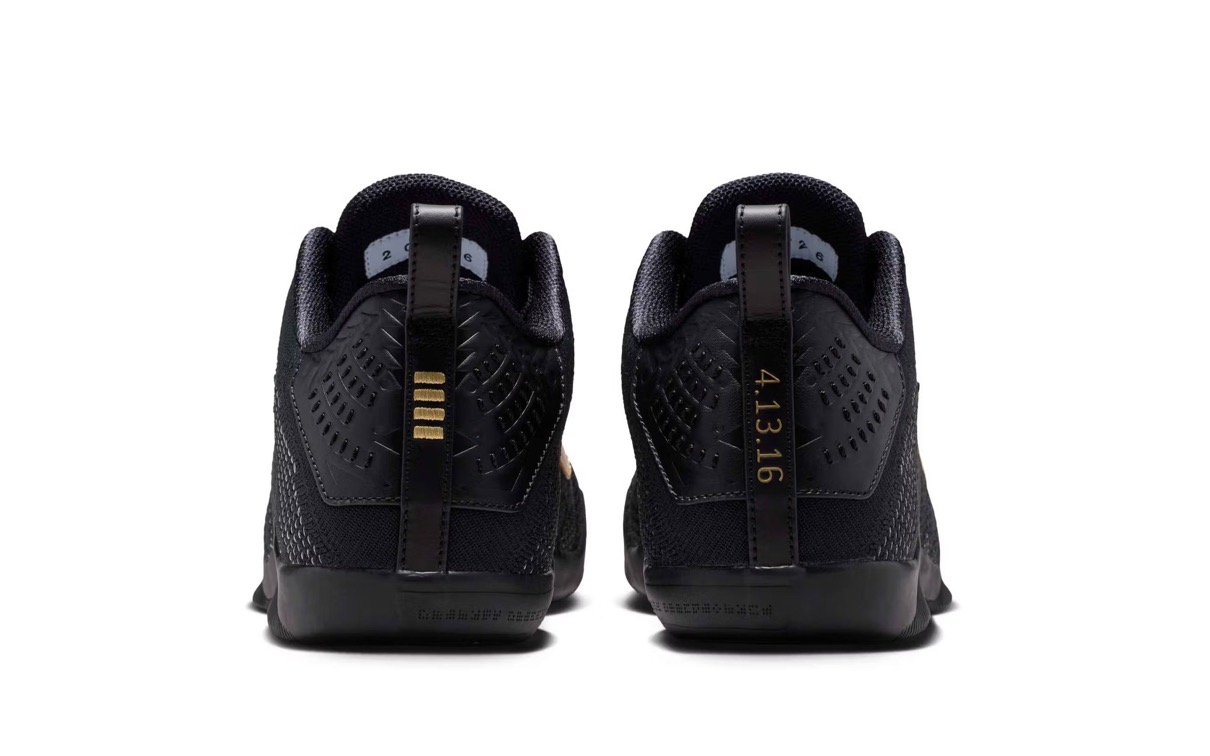 ナイキはマンバ・デーに合わせてあの瞬間を10年ぶりに再現。感情的なつながりを保ちつつ、パフォーマンス性能を洗練。このシューズは、ブラックアウトされたメッシュのアッパーとそれに合わせたミッドソールでオリジナルのデザインを忠実に再現し、クリーンでステルス感のあるルックスを生み出している。随所に配されたゴールドのアクセントが物語を紡ぎ出し、サイドパネルにはメタリックなスウッシュを配置し、かかと部分にはブライアントの最後の試合の日付を示す「4.13.16」の文字が刻まれている。その他のディテールには、アキレス腱からの回復を称える4本のステッチライン、インソールに施されたゴールドのXIロゴ、そして彼のNBAでの20シーズンを象徴する控えめな「XX」のブランディングなどが含まれる。また、今回の復刻モデルではシュータン裏に『2026』のタグがあしらわれている。