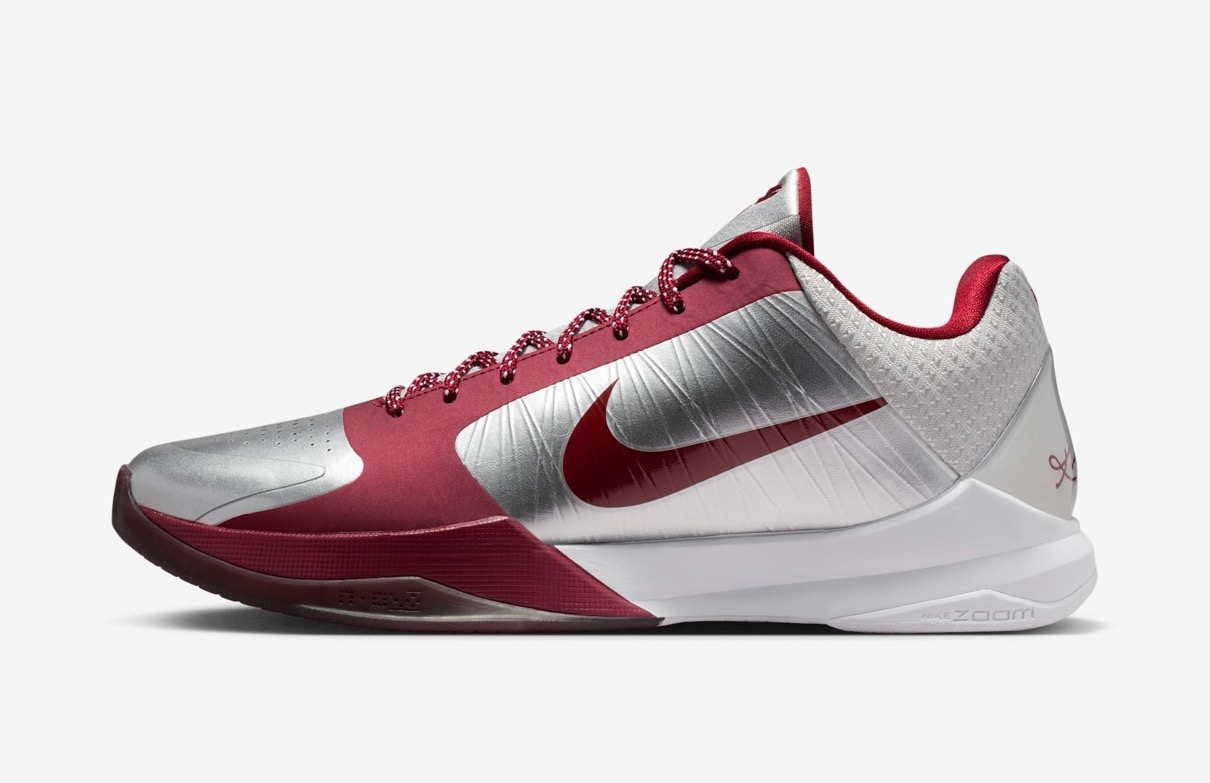 世界最強の毒を持つ毒蛇「ブラックマンバ(Black Mamba)」の愛称で知られる元NBAレジェンドバスケットボールプレーヤー コービー・ブライアント(Kobe Bryant)のシグネチャーシューズ KOBE 5の復刻モデル「KOBE 5 PROTRO(コービー5 プロトロ)」。2010年に発売されたこのナイキ コービー 5 プロトロのカラーリング 通称“Lower Merion Aces Away”は、コービー・ブライアントの高校時代のルーツを讃えた一足。アッパーはメタリックシルバーとチームレッドの組み合わせで、ミッドソールには爽やかなホワイトを採用。ヒールには、ブライアントが所属していたローワーメリオン高校のバスケットボールチームを彷彿とさせるスペード型のAceロゴが配され、コービーのシースロゴと共に、伝説の始まりを思い起こさせるディテールとなっている。
