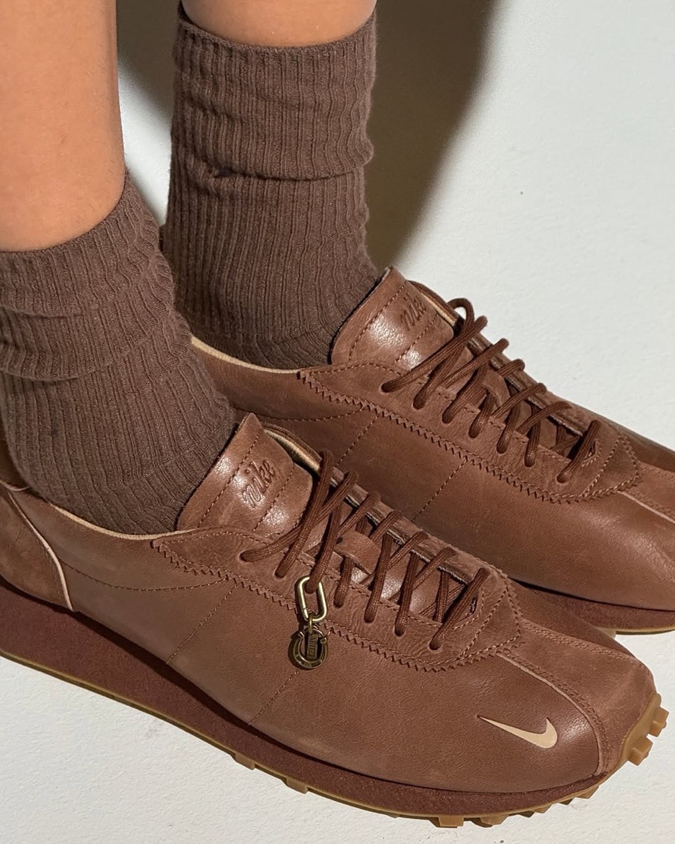 1977年に初登場した「LD-1000」。モデル名の “LD” は長距離を意味する“Long distance”、“1000” は年間1000マイル以上走る長距離ランナーへ向けた敬意。1977年、Nikeは、のちに米国有数のランニングクラブとなるAthletics Westを発足。同じ年にLD-1000が発売されたが、大胆に広がったヒールに関する安全上の懸念により、すぐに回収されることとなった。フィル・ナイトは、このリコールに対する反発を予測したが、むしろ顧客から感謝される結果となった。今回登場するのは、アッパーを高級感のあるファウナブラウンのプレミアムレザーで構築したコラボモデル。シュータンやヒールのロゴは刻印で仕上げ、サイドのスウッシュロゴは撤廃し、トゥサイドにミニスウッシュのみをあしらっている。