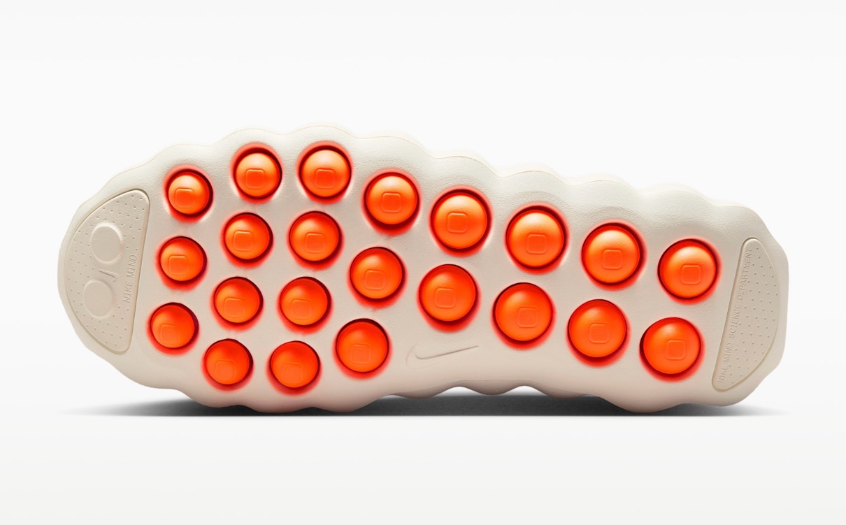 今回登場する近未来的シルエット『Mind 002』は、Nike Mindテクノロジーの機能性を備えた、どんなシーンにも映える、快適なスニーカー。足を踏み出すたびに柔らかで反発力に優れたフォームが、クッショニングを発揮し、大きめのアウトソールのノード(突起)が足を刺激。感覚を研ぎ澄まして足裏の刺激に集中することで、周囲の状況をクリアに認識できるようになる。Nikeのマインドサイエンス部門で開発された22個のノードが足に対して上下に動き、足裏の感覚を呼び覚ます。足裏の刺激により、脳の活動が活性化する可能性を示唆する研究結果が得られているという。カラーはセイルにハイパークリムゾンとクロムのアクセントで仕上げている。