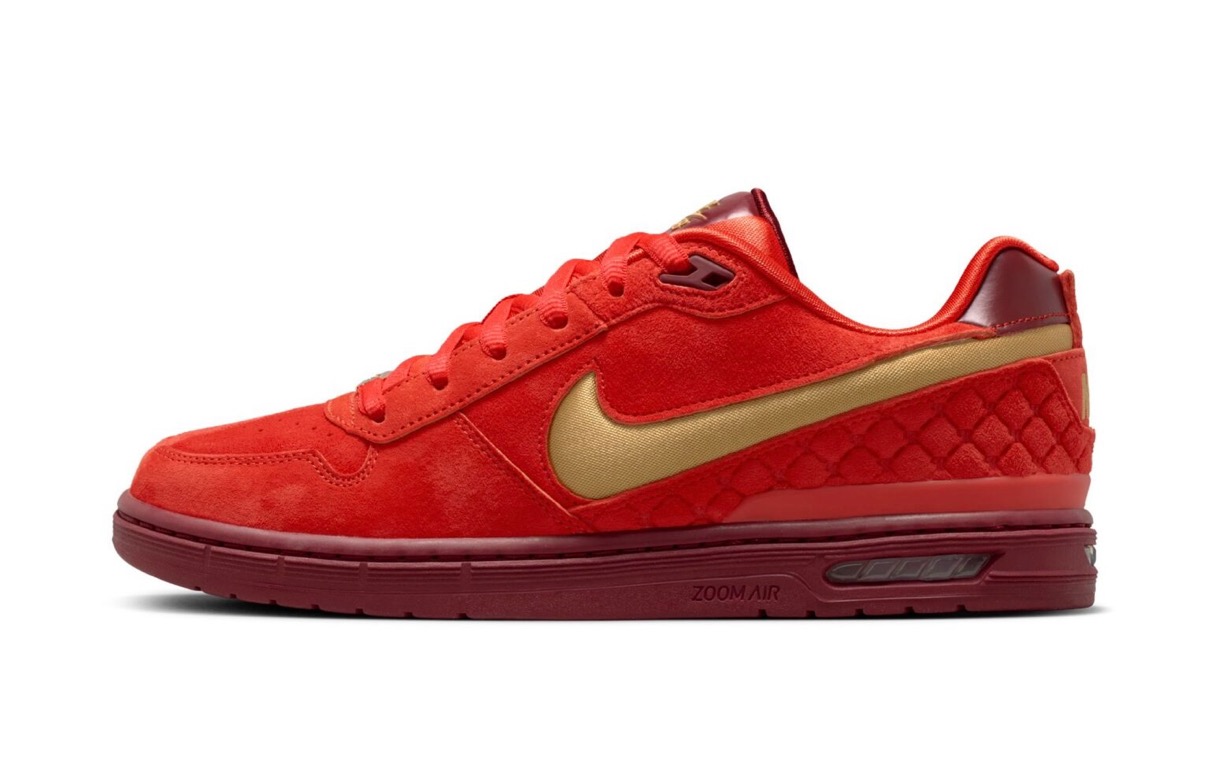 ハバネロレッドにクラブゴールドのアクセントが煌めく今作のデザインは、Kobe Bryant(コービー・ブライアント)の2011年NBAオールスターゲームのMVPジャージーからインスパイア。シューレースデュブレもウエストチームを表現した“WEST”仕様。この一足はPaul RodriguezのKobeへのリスペクトと、LAへの愛が詰まったカルチャーへのトリビュートだ。さらに、Zoom Airユニットがレスポンスの良いクッショニングを提供し、パッド入りのシュータンが2000年代初頭のスケートシューズの雰囲気を添えている。過去を称えつつ未来へと移行するこのシューズは、コービーとロドリゲスの遺産を称え続けている。