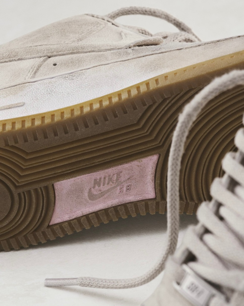 アメリカ大統領専用飛行機『エアフォースワン』にちなんで命名されたナイキの人気スニーカー「Air Force 1(エアフォース1)」は、「ナイキ エア」を搭載した世界初のバスケットボールシューズとして1982年に初登場。シューズデザイナー Bruce Kilgore(ブルース・キルゴア)が手がけたそのアイコニックなシルエットは様々な人々に愛され続けてきた。今回、Nikeのブランド内コラボレーションとして、スケート仕様にアップデートされたエアフォース1のプロジェクトが始動。この融合により、よりグリップ力のあるソールと強化されたパッドが導入され、スケーターに対応した アイコニックなスタイルと機能的なデザインを一体化させた一足が誕生。アッパー素材はスウェード&レザーで、カラーはライトオールウッドブラウンとピンクフォームの組み合わせで仕上げている。