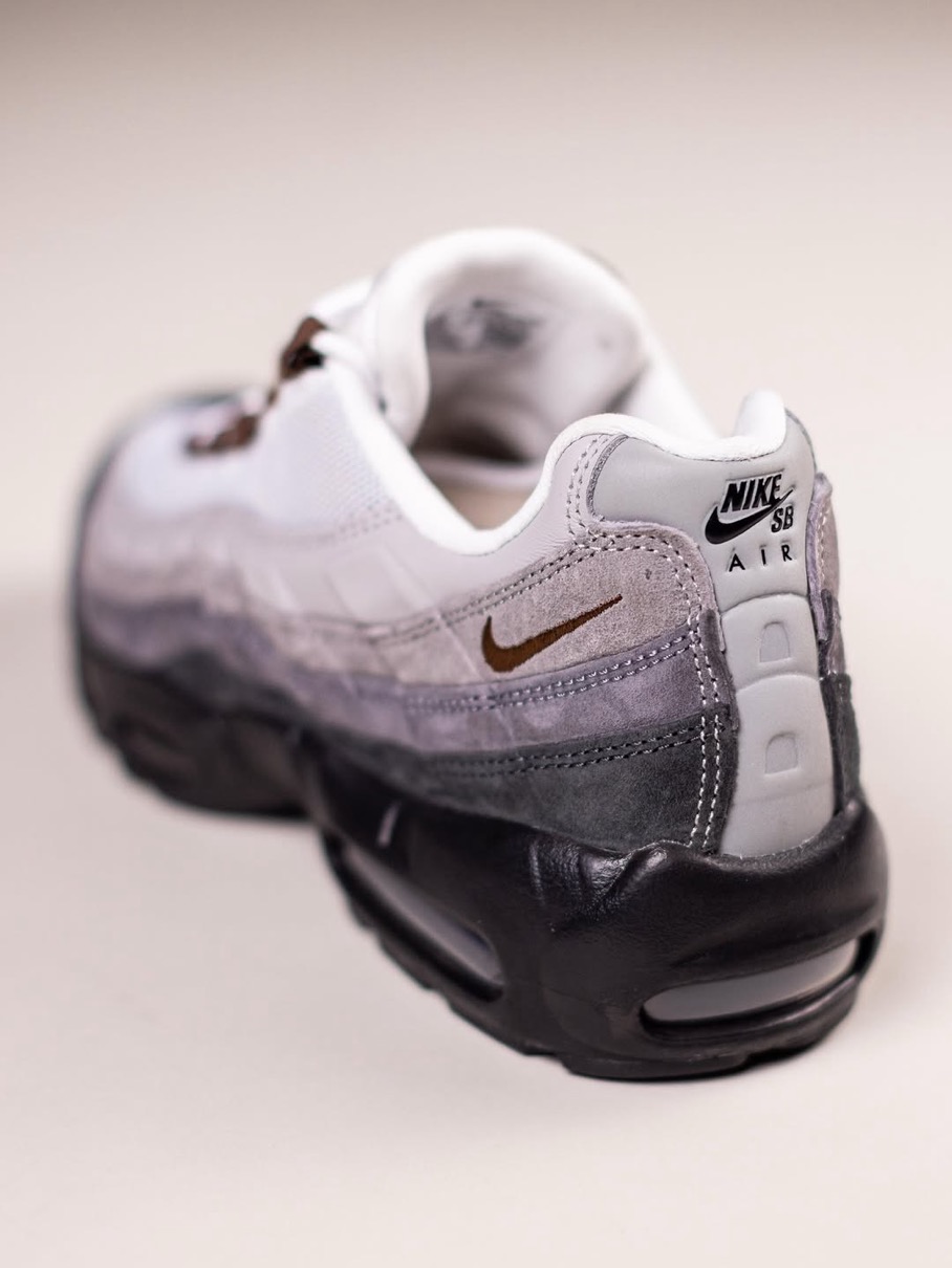 1995年に初めてリリースされ、シューズデザイナーのセルジオ・ロザーノが人体の背骨からインスピレーションを得てデザインしたナイキの人気スニーカーモデル「エアマックス95(Air Max 95)」。今回、Nikeのブランド内コラボレーションとして、スケート仕様にアップデートされたエアマックス95が登場する。カラーはブラック/カカオワオ/アンスラサイト/ライトグラファイトといった組み合わせで、ヒールにはNIKE SBのロゴが刻印される。