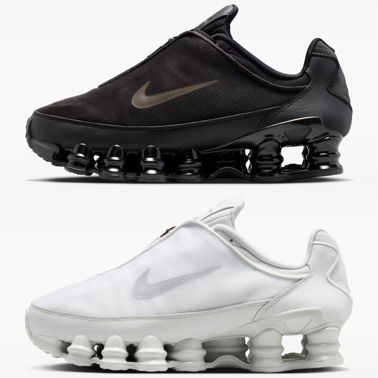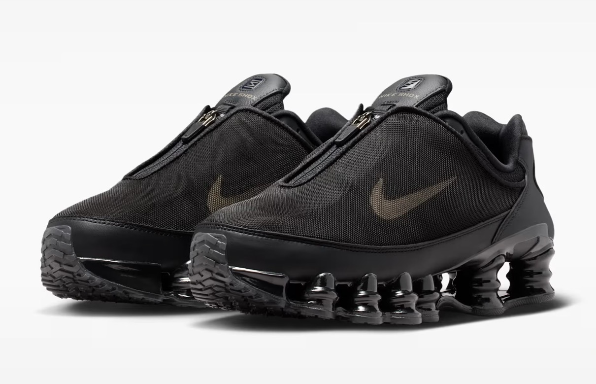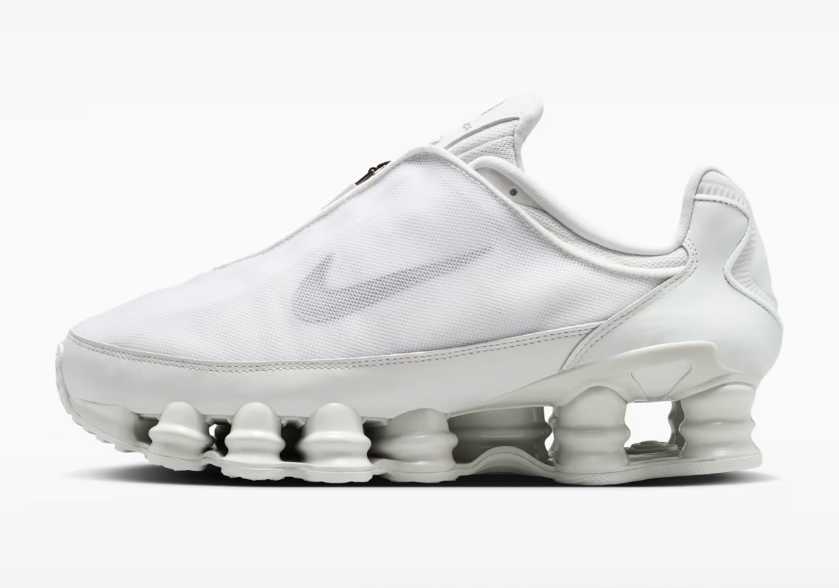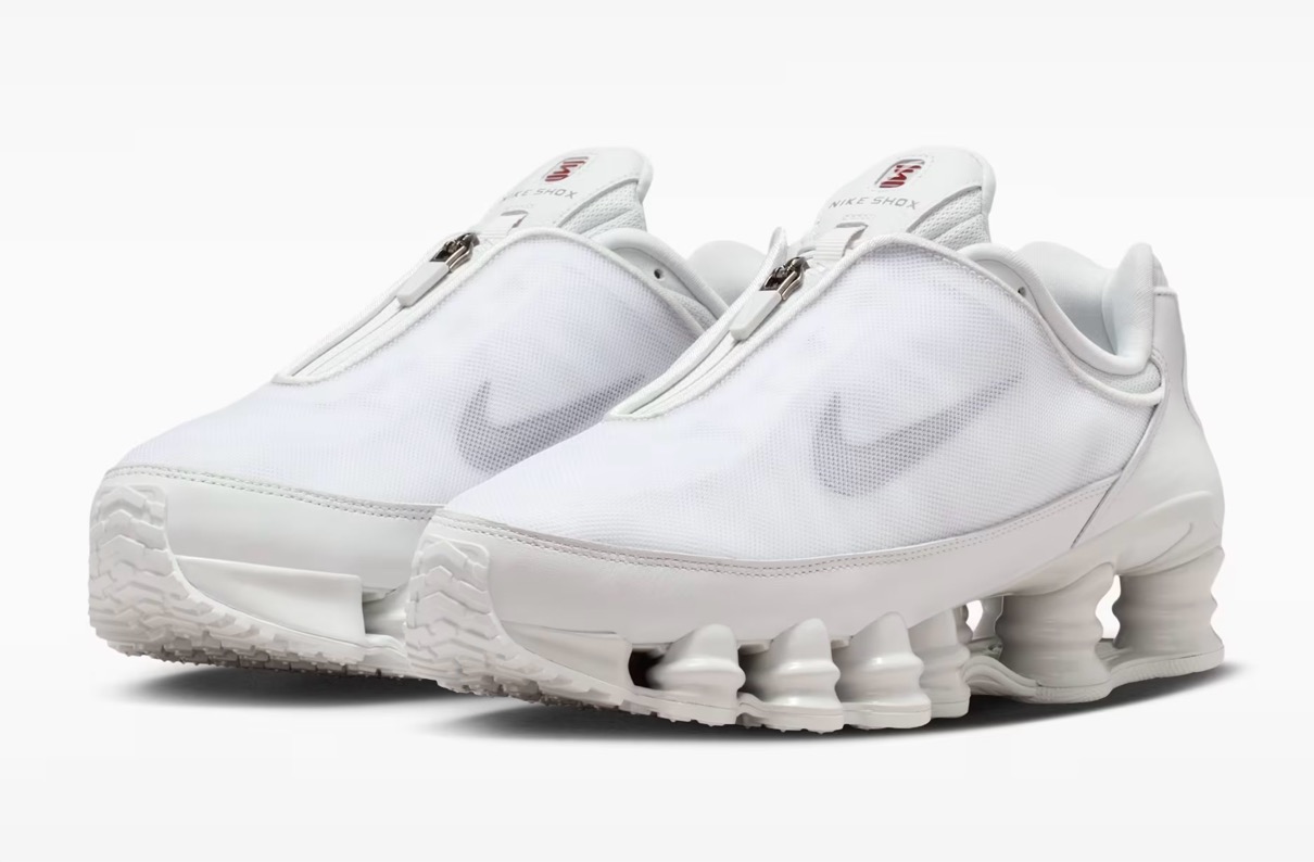 2003年に初登場した「NIKE SHOX TL(ショックス TL)」は、エネルギー効率の高い円柱状のスプリングコイルを備えたソールユニット「ショックスユニット」を搭載するクロストレーニングシューズ。ナイキのアイコンモデルを再解釈したこのバージョンは、アッパーに通気性メッシュカバーを採用し、シュータン部のジップパーツで開閉することも可能。カラーはブラックとフォトンダストホワイトのな色が展開。