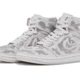 伝統的なバッシュスタイルを体現したハイカットシルエットにノンエアのミッドソールを搭載し、ヒールには象徴的なビッグNIKEロゴを配置。アッパーはホワイトカラーのレザー素材にブラウンのスネークスキンオーバーレイを組み合わせ、随所にブラックのアクセントをプラス。クラシックな白蛇カラーを再現した。