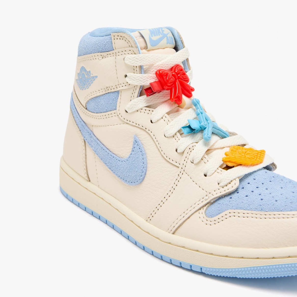 1985年に初めて発売されたMichael Jordan(マイケル・ジョーダン)のシグネチャー第1弾「Air Jordan 1(エアジョーダン1)」。新たに登場する本作は、レトロハイOGモデルをベースに採用し、ペールアイボリー/サイキックブルー/ココナッツミルクといったカラースキームを纏った一足。シューレース部にはアイコニックなチャームが付属する。