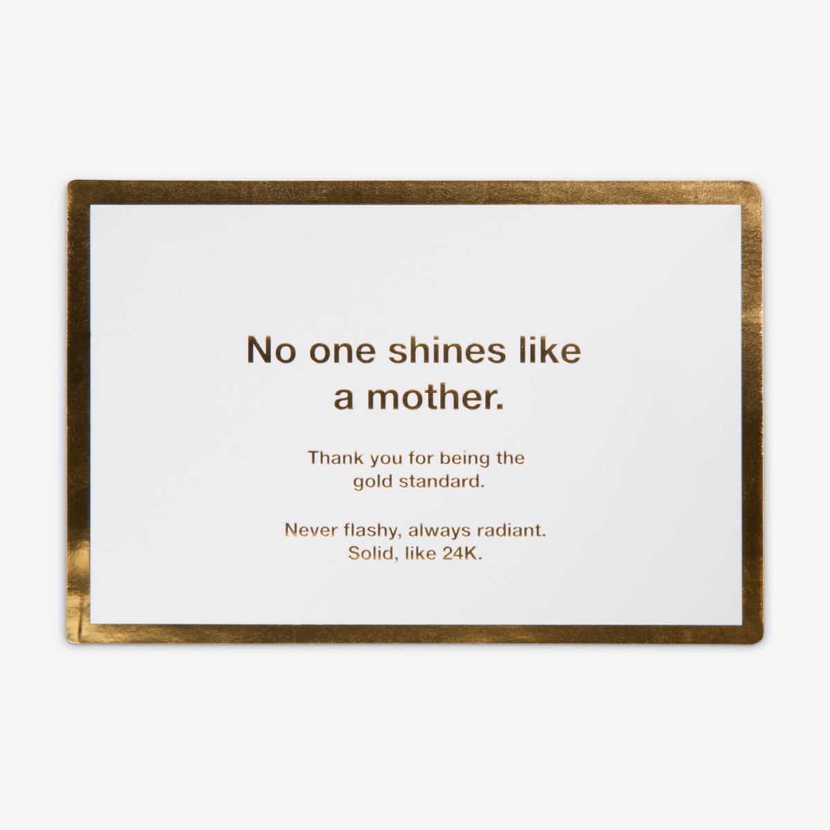デザインは、ホワイトのメッシュアッパーをベースに、メタリックゴールドのマッドガードが際立つディテールを添えている。このゴールドの仕上げが全体のテーマを牽引し、母親こそが「ゴールドスタンダード(最高基準)」であるというコンセプトを体現。さらに、今作には特別デザインのパッケージが付属し、ハートを分割したデザインのメタルチェーンも同梱。母の日のギフトとして贈るのに相応しい要素となっており、同梱のメッセージカードもこのコンセプトを引き継ぎ、母親への日々の感謝を伝えるストーリー全体へと結びつけている。