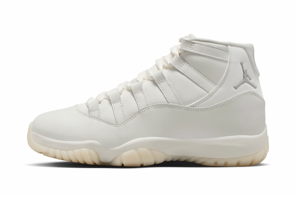 1995年に初登場した「Air Jordan 11(エアジョーダン11)」。モデルの30周年を記念し、2025年10月から2026年初頭にかけて9つの異なるカラーウェイがリリースされるエアジョーダン11。その一部となる今作は、中国の独身の日(11/11)を祝した一足。幅広のリボンレースと淡水パールのキーチェーンが付属し、シューズに独特の外観を与える。滑らかな質感のレザーアッパーをセイル/パールグレーといった柔らかいカラースキームで仕上げ、ヒールサイドにはメタリックシルバーのジャンプマンロゴをあしらい、ジョーダンブランドのアイデンティティを表現している。