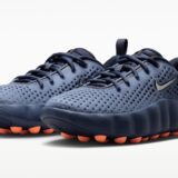 ホワイトカラーのレザーアッパーにコーデュロイ生地やフェルト素材のスウッシュロゴを組み合わせ、90年代を想起させるレトロな雰囲気を醸し出すブルー、レッド、ブラック、ゴールドのカラーリングをあしらった。