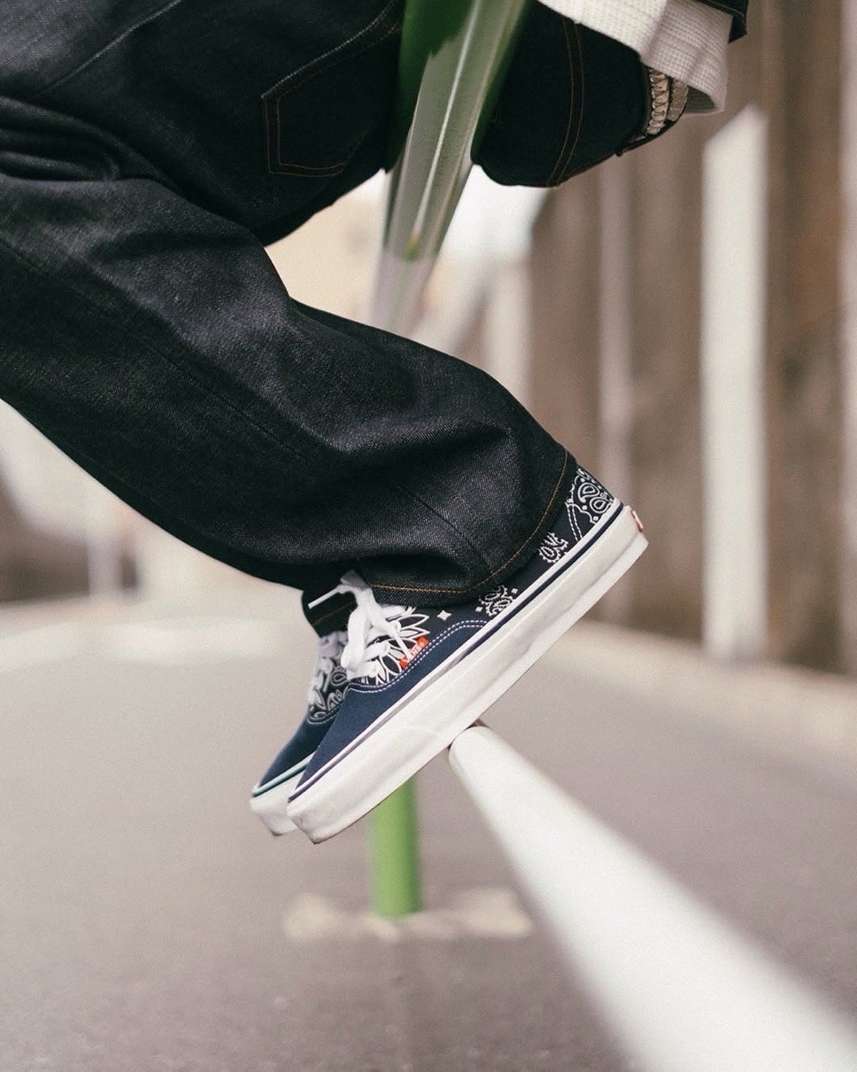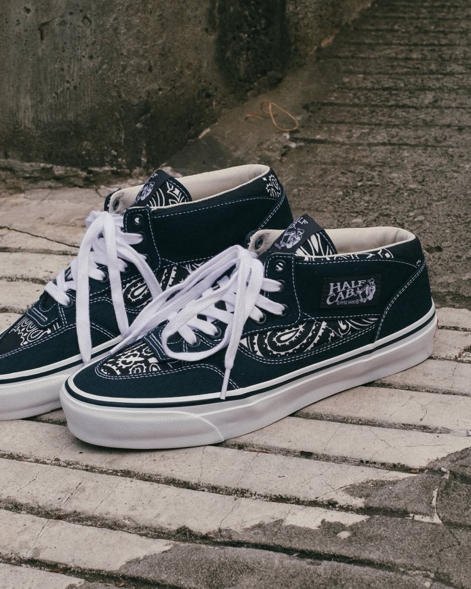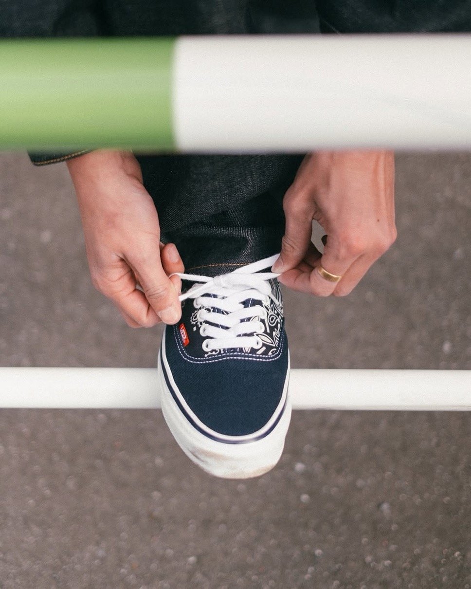 10代の頃から愛し続けてきたAuthenticとHalf Cabをベースに制作。渡辺氏が10代の頃に自らカスタマイズしたバンダナ仕様のVansスニーカーが、