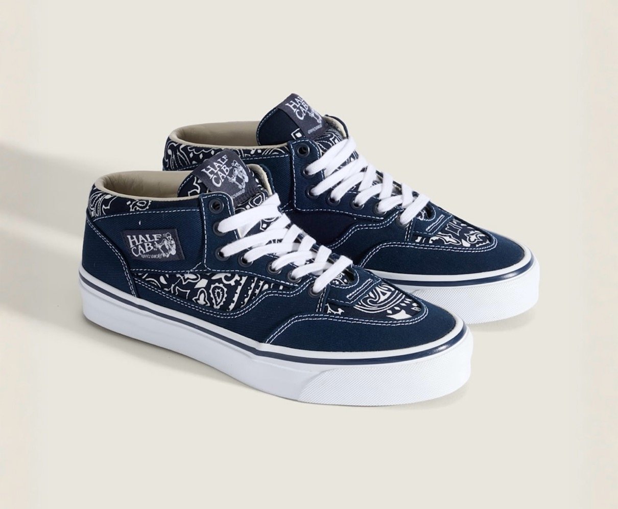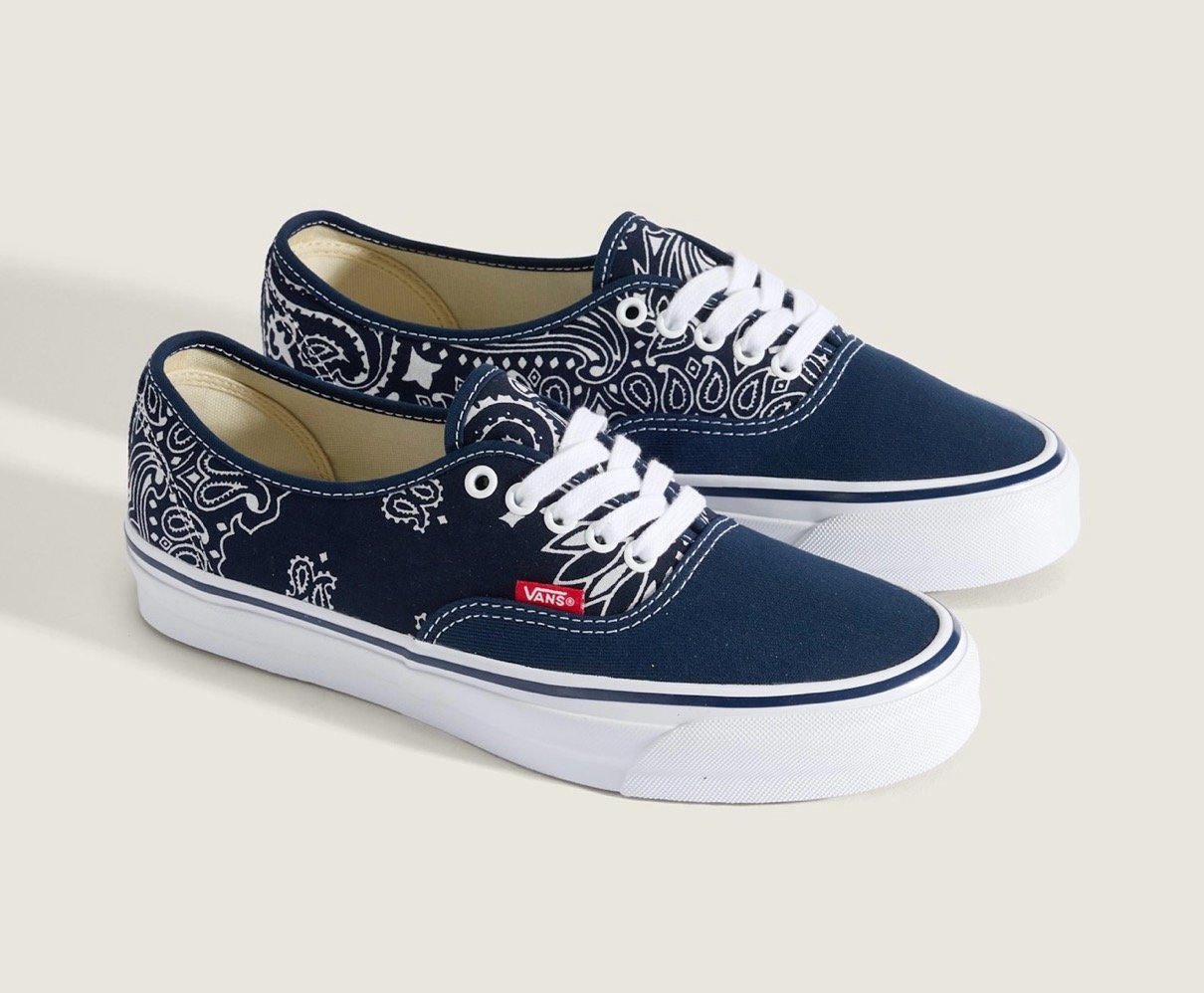 ヴァンズ x ベドウィン & ザ ハートブレイカーズ 2026年春夏 ネイビーのバンダナ柄新作コラボスニーカー『オーセンティック & ハーフキャブ』が登場。【2026SS / VN000EEUCQ8 / VN000EFYCQ8】