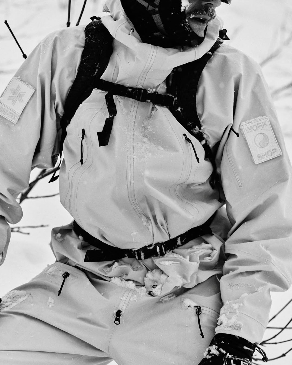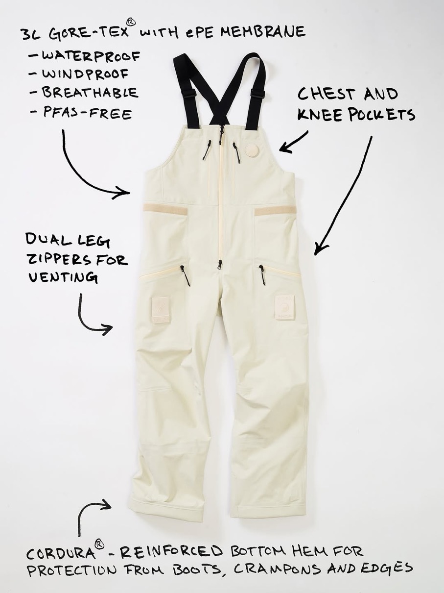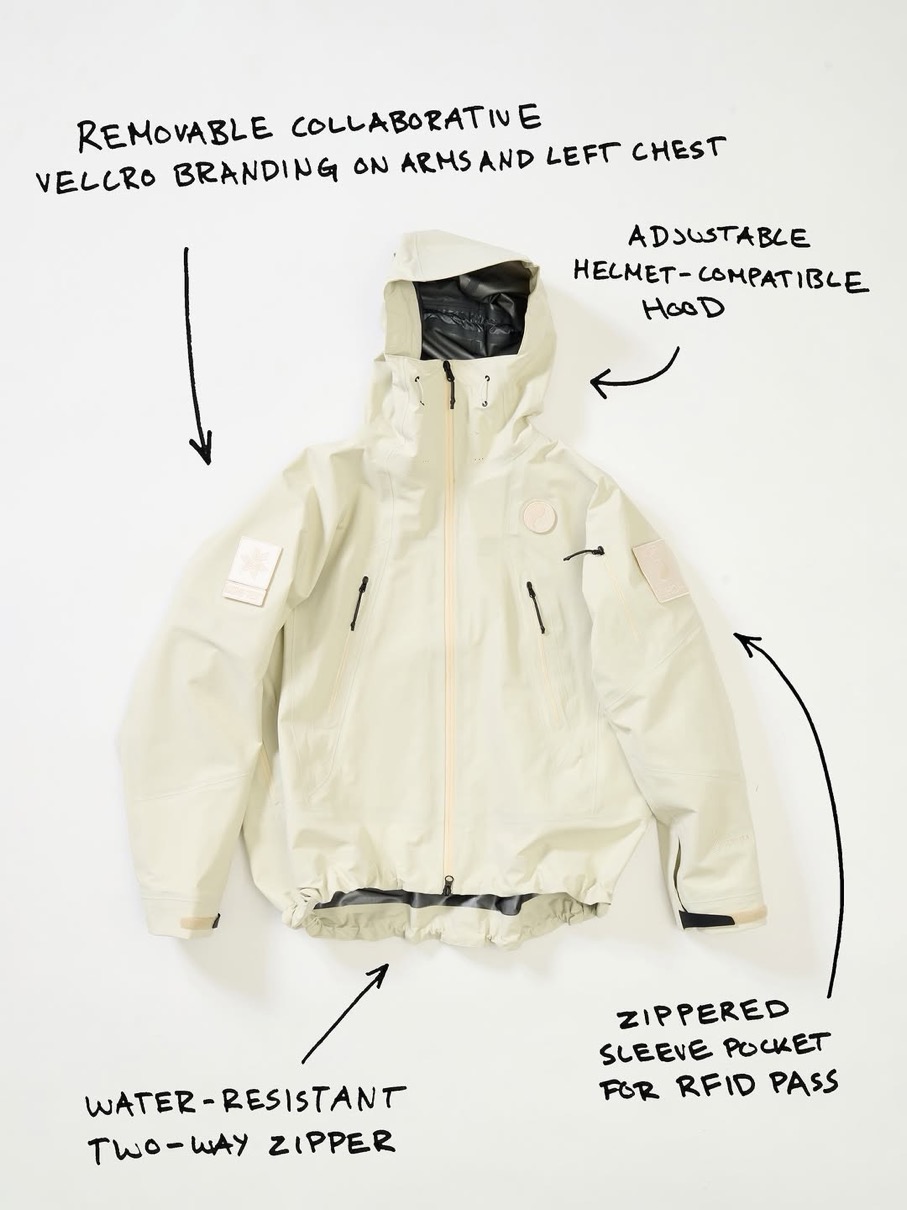 今回のコラボでは、3レイヤーのGORE-TEX(ゴアテックス)を採用したジャケット&ビブパンツが登場。ルーズフィットのシルエットで、防水・防風・通気性の良さを兼ね備えた高機能アイテムがブラック、ナチュラルの2色展開でリリースされる。