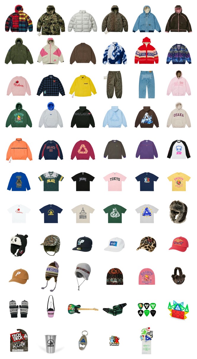 PALACE SKATEBOARDS “HOLIDAY 25” COLLECTIONは、Week1が海外2025年11月28日/国内2025年11月29日(土)よりPALACE STORE TOKYO各店頭およびPALACE公式オンラインストアにてリリースされる。毎週の発売アイテムは別記事にて随時お知らせしていくのでお見逃しなく。一先ずはページ下部にてパレスクルーが着こなす今季の全ルックをチェックしておこう。