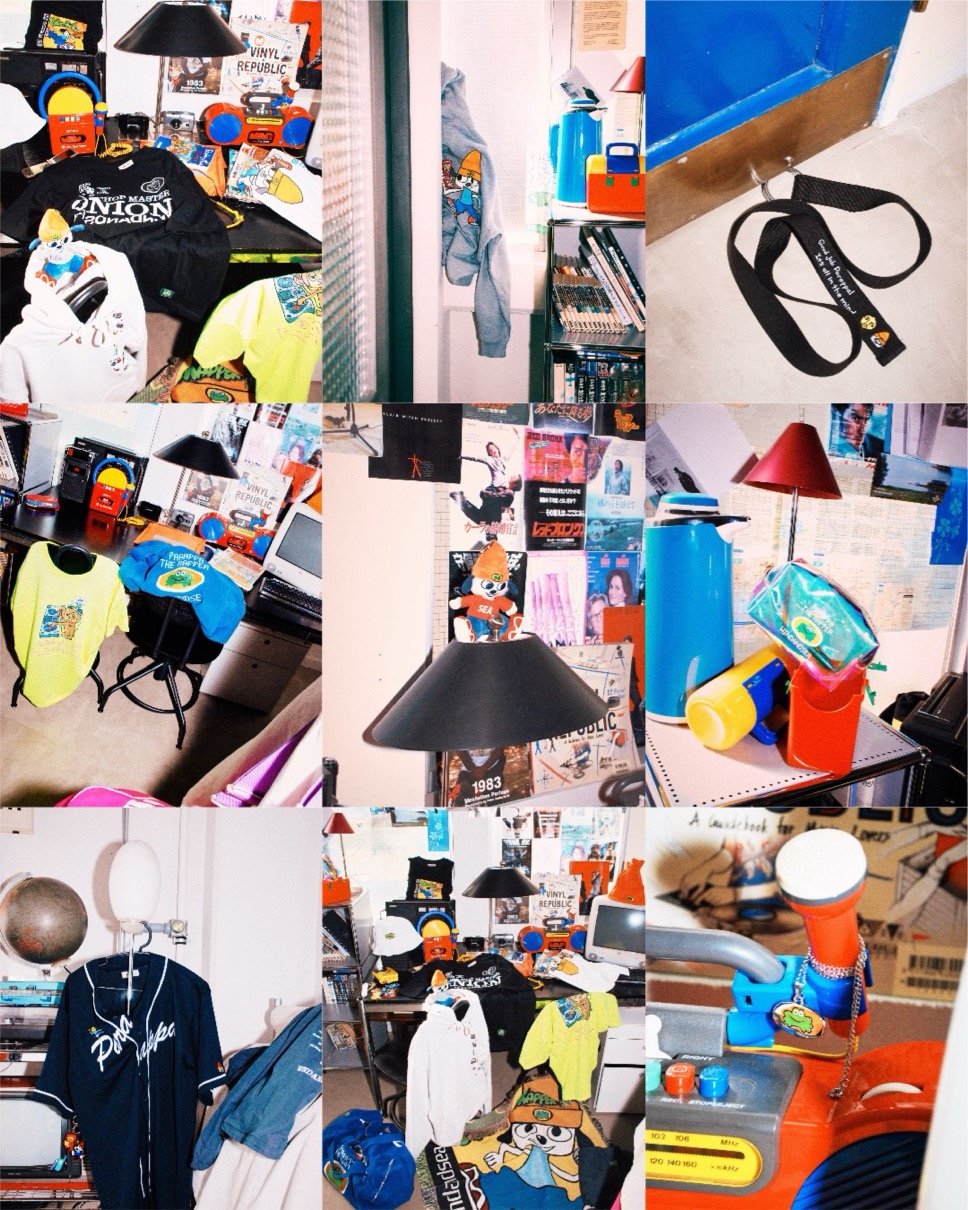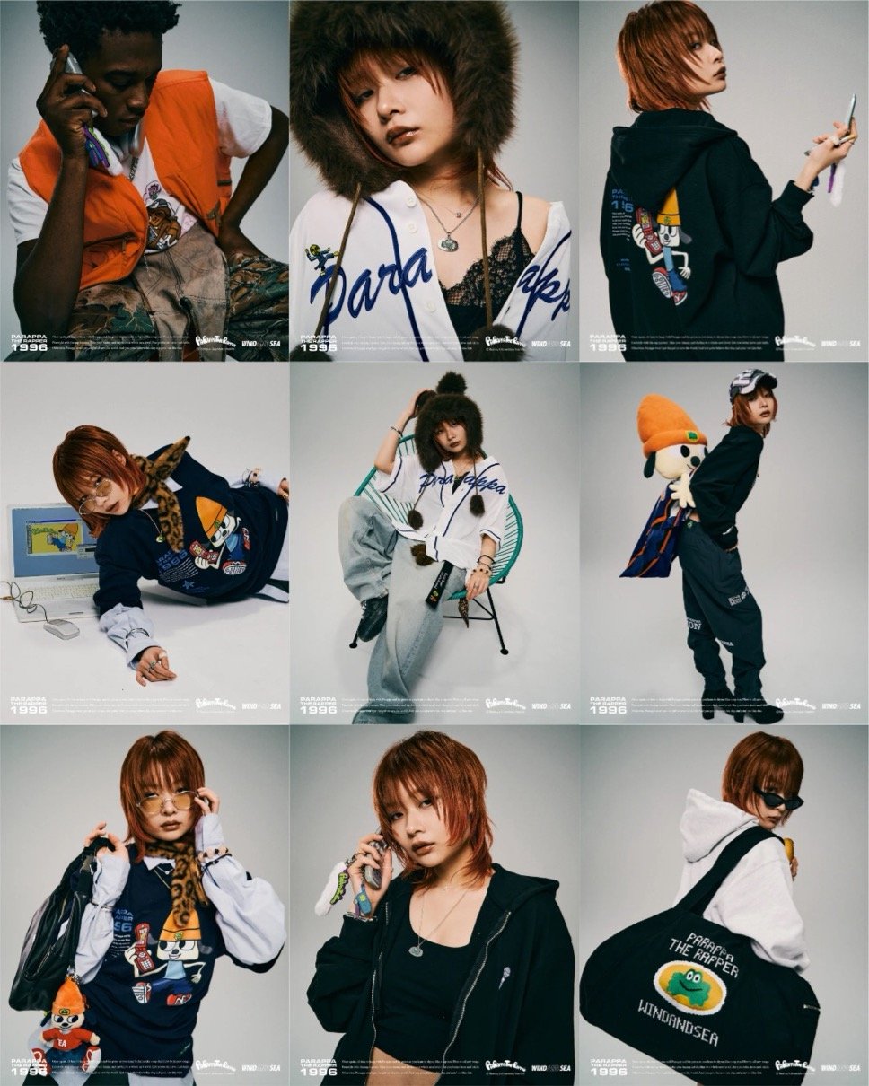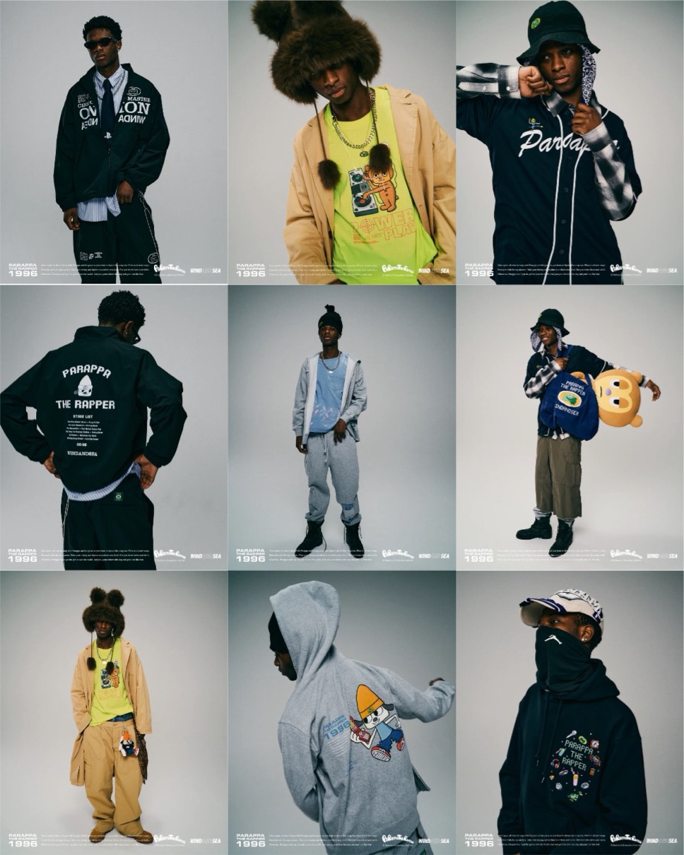 1996年にPlayStation用ソフトとして発売された『パラッパラッパ―』の30周年を記念し、ロドニー・グリーンブラット氏が本企画のために描き下ろしたアートワークをメインビジュアルに採用。90年代から2000年代の平成カルチャーを現代的に再解釈した、ノスタルジーとフューチャリスティックな感性が融合するコレクションとなっている。ガラケーやクリアカラーのパレット、ファー素材といった当時を象徴するモチーフをアイテムに落とし込み、海外版PlayStationパッケージから着想を得たウェアデザインを展開。