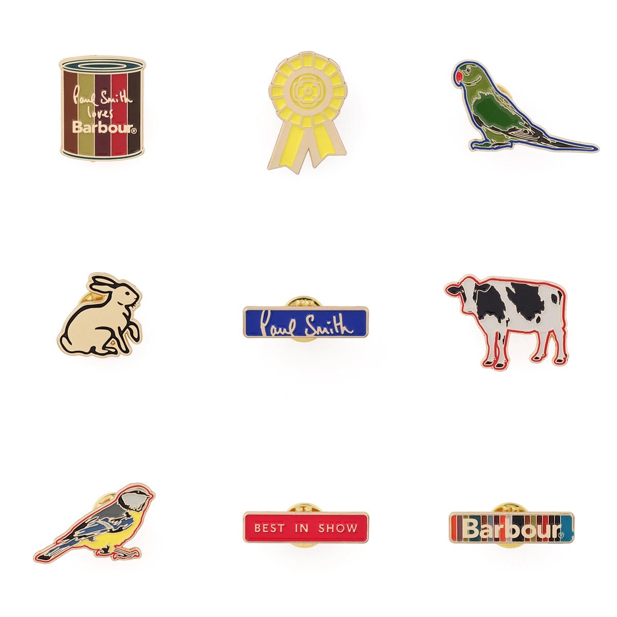 コレクションの中心となるのは、バブアーの代表作である《Bedale(ビデイル)》ジャケット。ポール・スミスのシグネチャーであるストライプを使ったパッチワーク仕様や、意外性のあるカラーブロックタイプなど、メンズ・ウィメンズで展開される。そのほか、ロング丈の《Border(ボーダー)》コートやショート丈の《Transport(トランスポート)》ジャケットも登場。ライナーベストには異なるシャツ柄を組み合わせたユニークなデザインが採用されている。ネップ糸で編まれたざっくりとしたニットは、ワックスドジャケットのインナーとしても最適。雨天用には、ワックスドコットン製のバケットハットやレインブーツもラインアップ。バブアーの代名詞であるエナメルピンバッジもポール・スミス流にアレンジされ、グリーンのオウムやロゼット、そしておなじみのフリージアン牛モチーフなどが、帽子やジャケットの襟元をユニークに彩る。