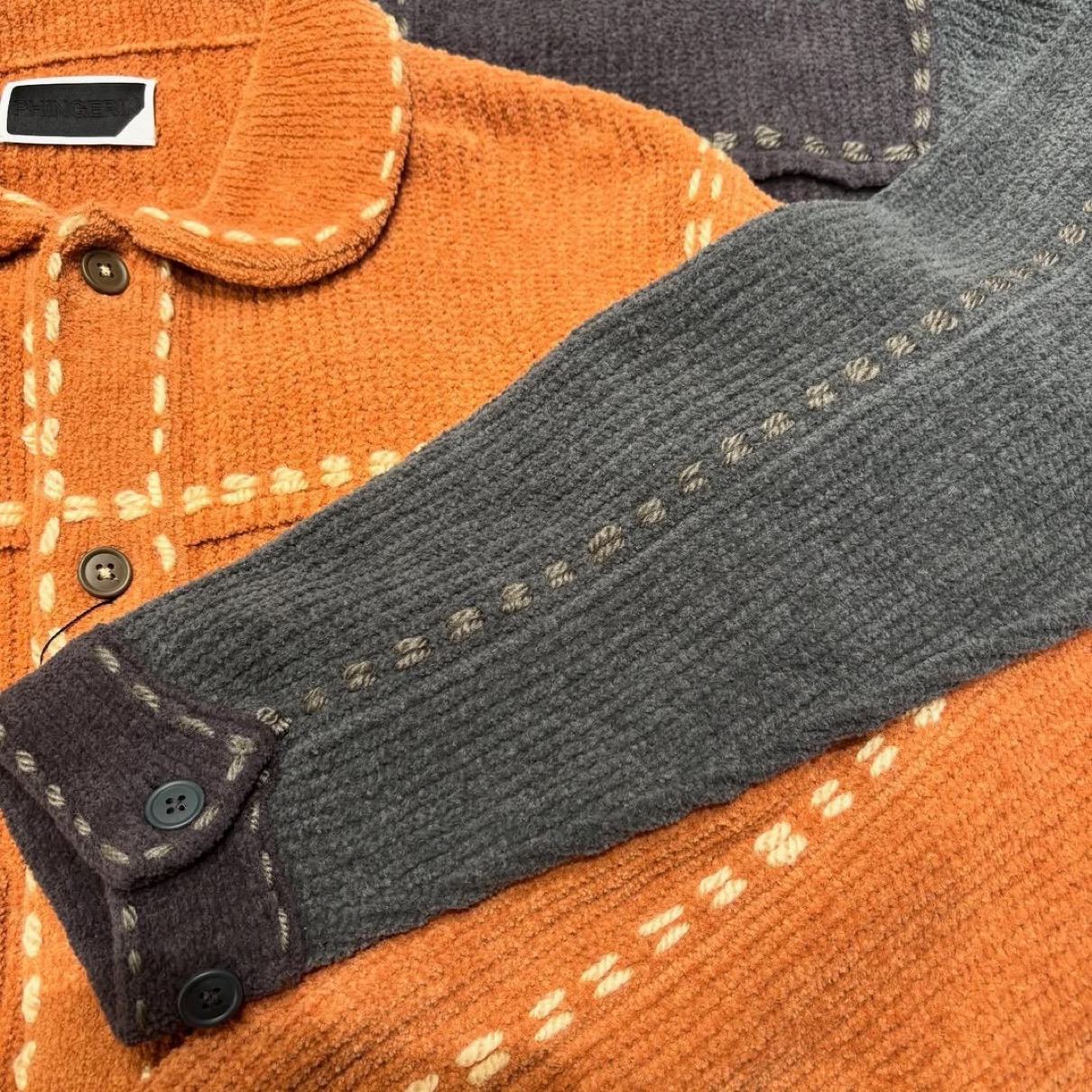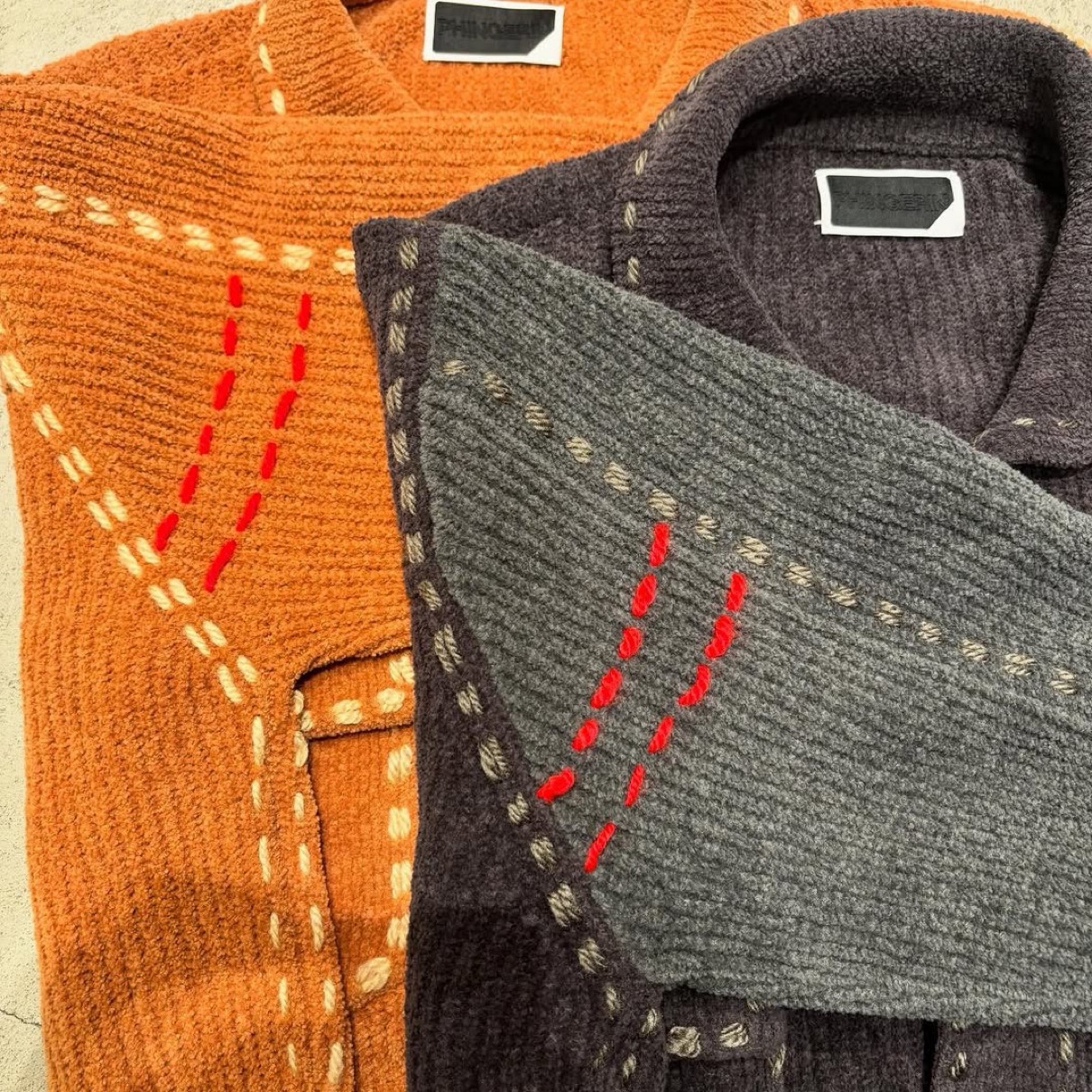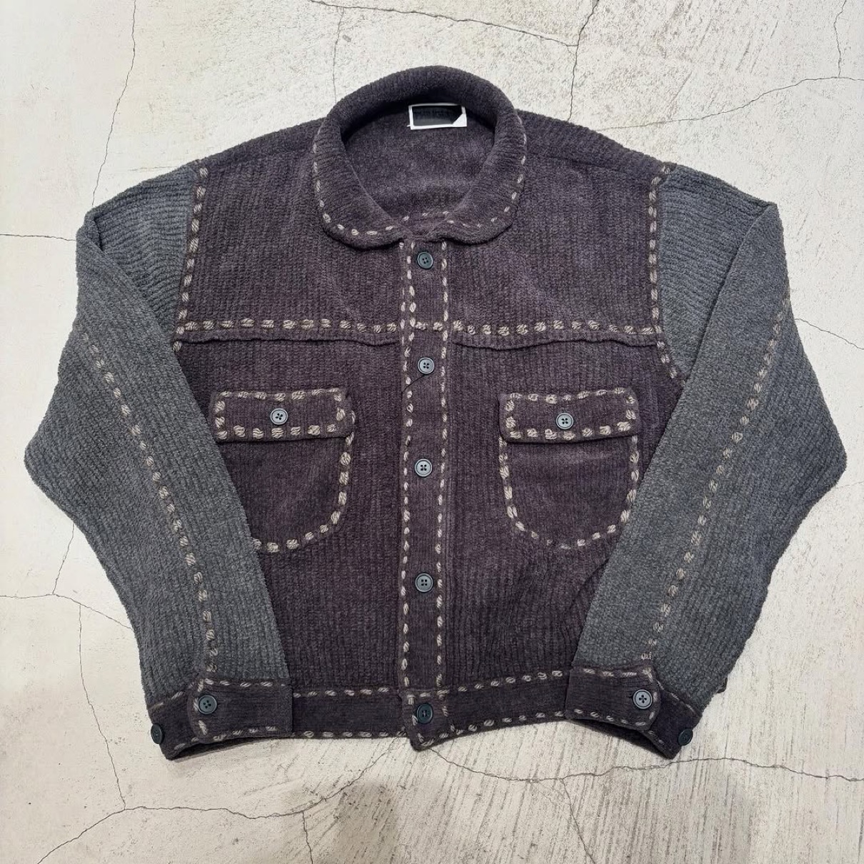 柔らかい質感に、都会的なムード。深みのあるカラーが際立つ、スペシャルな別注アイテムが登場。今作は、クラシックなデニムジャケットをベースに、再構築した遊び心あふれるニットカーディガン。太めの糸で表現されたステッチがデザインのアクセントとなり、ニットならではの柔らかさと軽やかさを引き立てる。綿×ポリエステル素材を使用し、ロングシーズン活躍する汎用性の高さも魅力。カラーは、落ち着きの中に洗練を感じるDK.GRAYと、テディベアをイメージしたMD.BROWNの2色を別注。羽織るだけで奥行きと立体感をプラスし、日常のスタイリングにさりげない個性を添える一着だ。