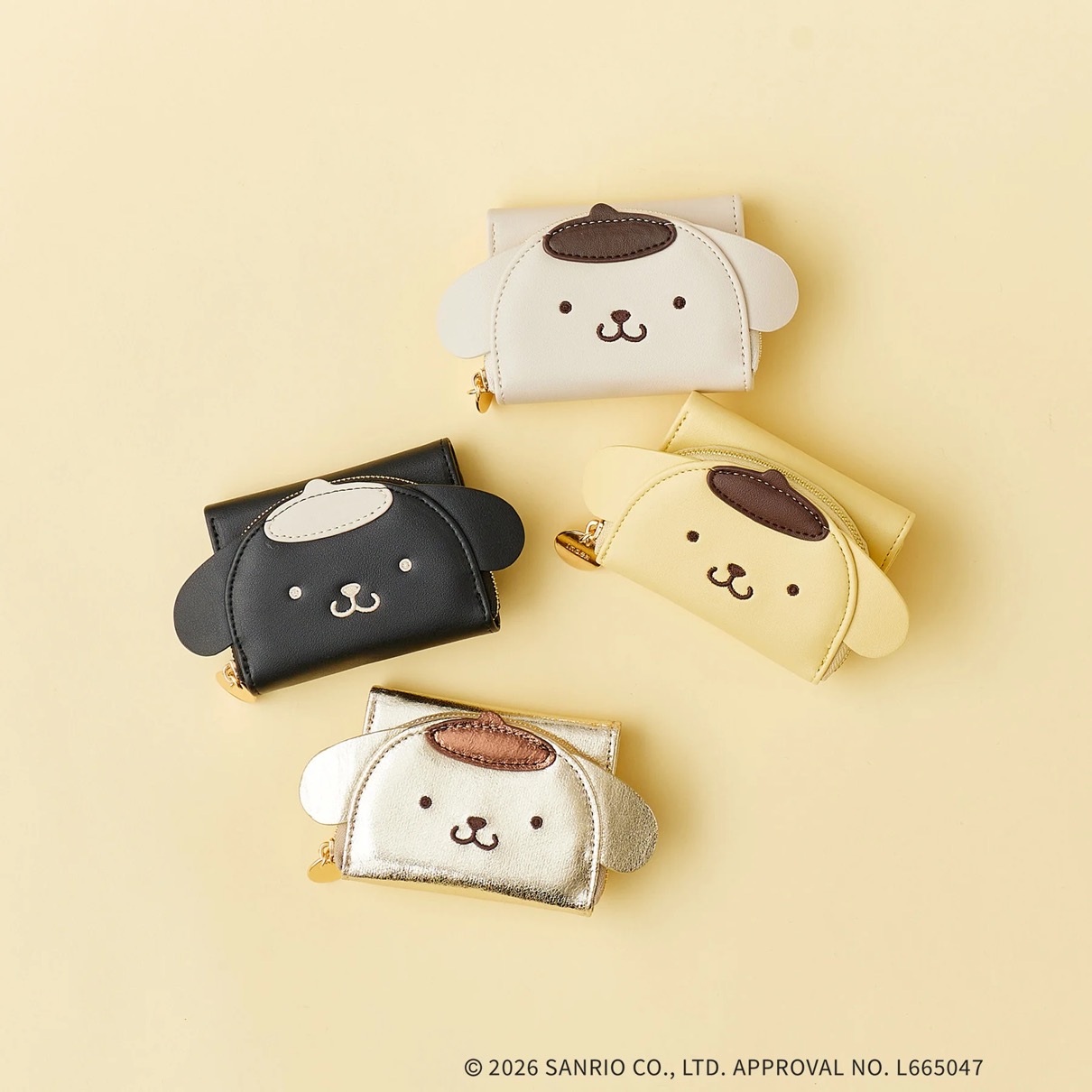 ポムポムプリンのかわいいお顔がデザインされたミニウォレット。