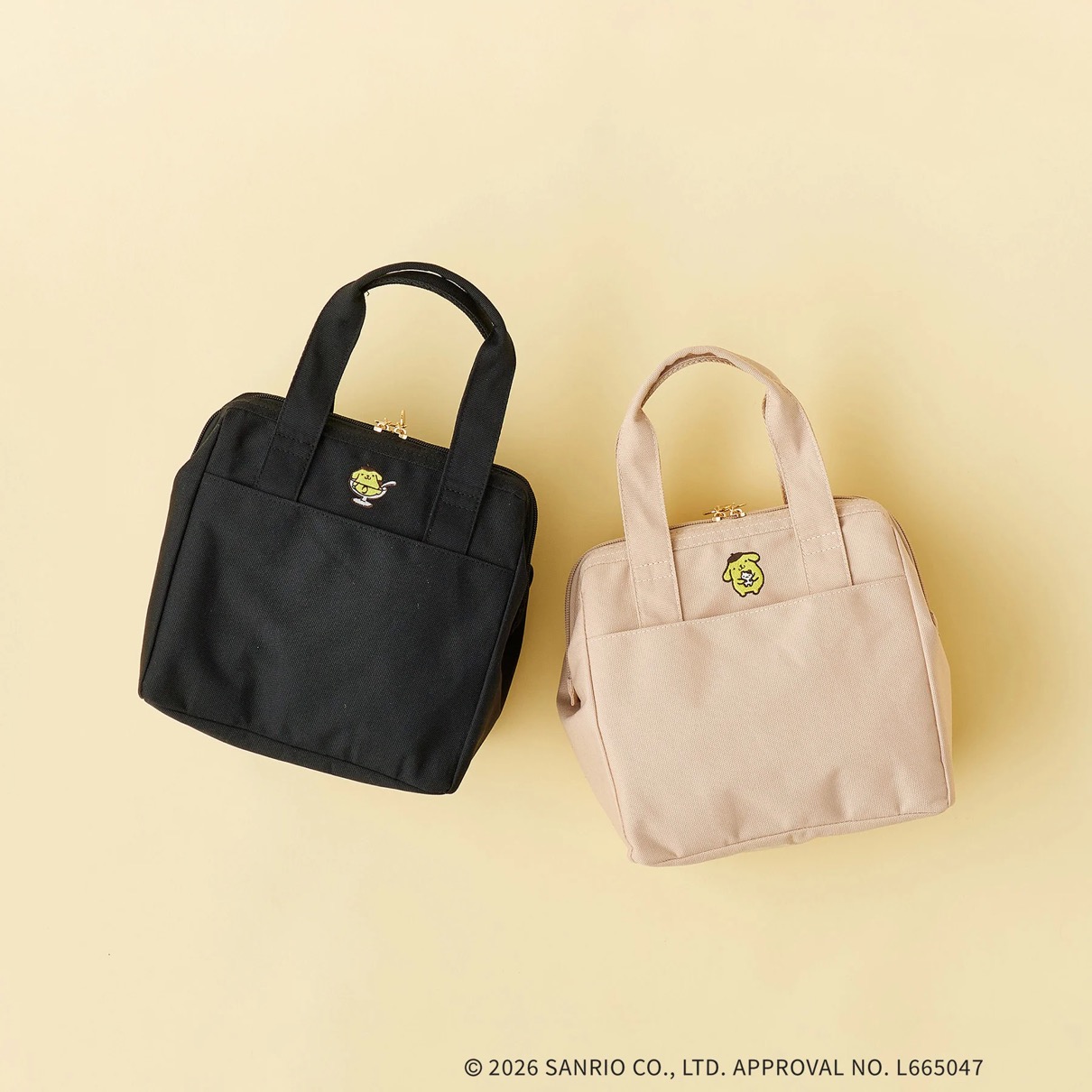 通勤や通学シーンにもぴったりの保冷ランチトートで、ポムポムプリンのかわいい刺繍がアクセントになっている。